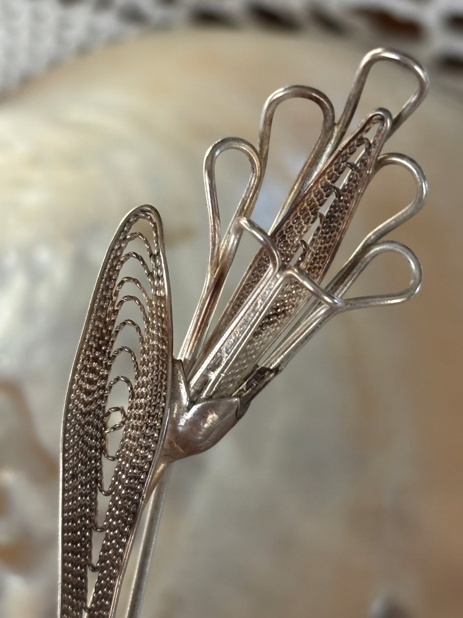 Broszka AK stara srebrna kwiat lilia filigran