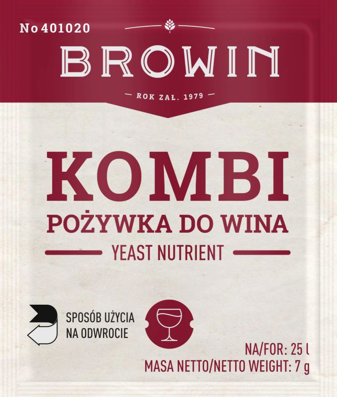 Для правильного розвитку винним дріжджам, окрім джерела цукру, потрібні також сполуки азоту та фосфору, якими фрукти бідні в нашому кліматі, а також вітаміни, переважно з групи B. Використовуючи поживну речовину Kombi, ми досягаємо належного розмноження дріжджів, швидкого початку бродіння, а також повного послаблення цукру, що міститься у фруктах і додається під час виробництва вина. Вітамін B1 стимулює ріст дріжджів і є сильним активатором бродіння. Компоненти неактивних дріжджових клітин прискорюють розмноження біомаси, є джерелом стеролів, жирних кислот і мікроелементів - магнію і марганцю. Вони адсорбують речовини, що перешкоджають бродінню. Сполуки, що містяться в поживних речовинах, повністю використовуються дріжджами під час їх розмноження, тому вони не впливатимуть на смак і аромат вина чи здоров’я людини.