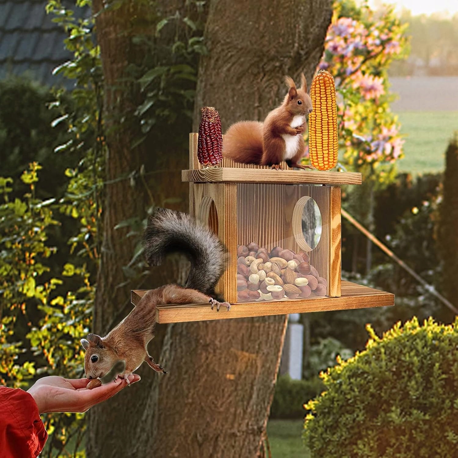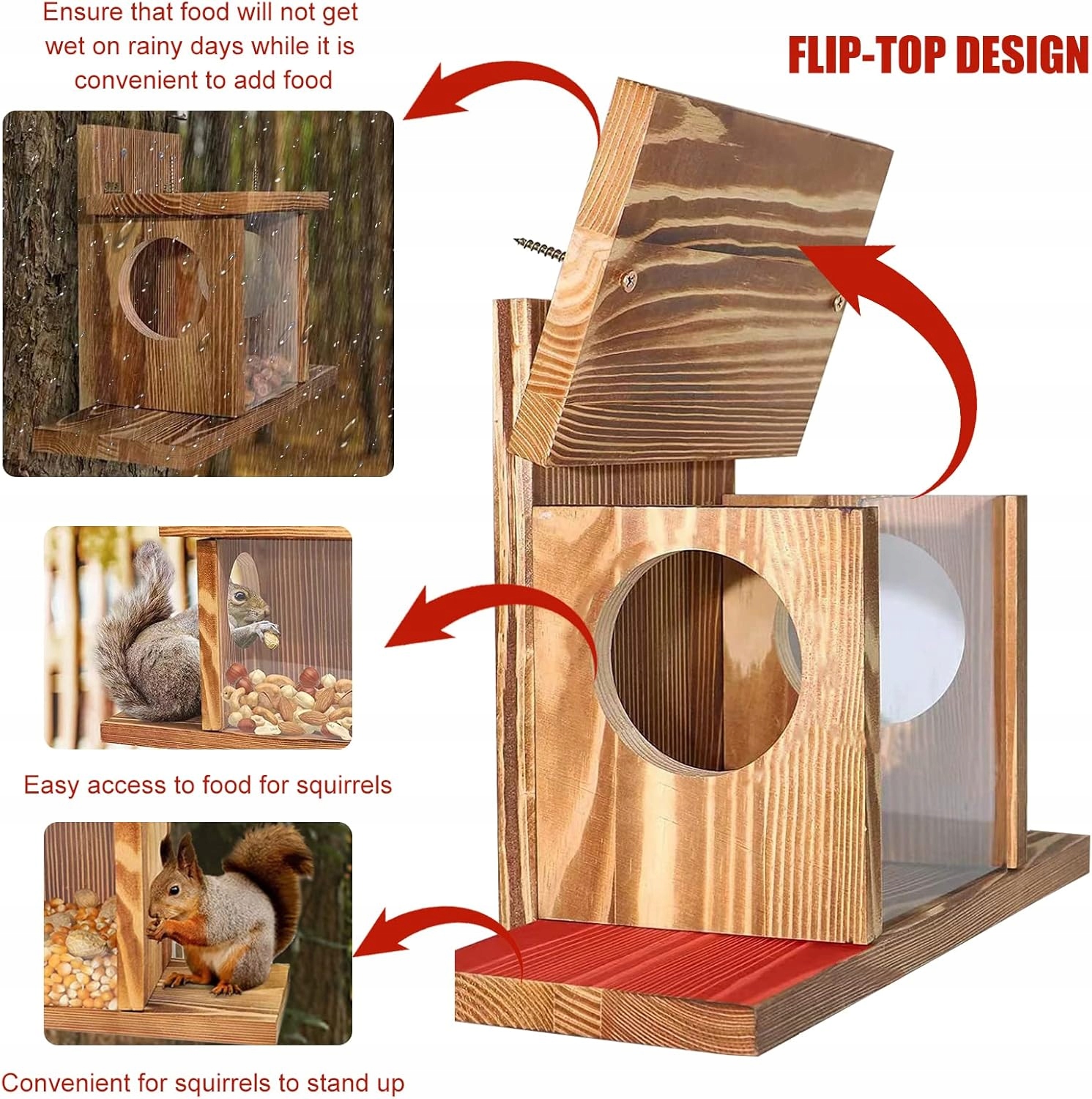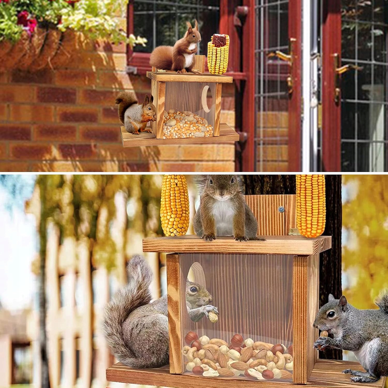 Чудовий подарунок для любителів тварин - ящик для білок можна поставити у дворі або в саду. Додайте горіхи, фундук, насіння соняшнику, арахіс або кисломолочні горіхи та чекайте, поки прийдуть білки та подивіться, як білки та бурундуки насолоджуються перекусом. [Простий у використанні] Годівниця для білок тримається двома кілочками. Легко зібрати, просто прикрутіть стіл до дерева або паркану, а потім прикрутіть кукурудзяний качан до підставки. Розміри: висота 24 см, ширина 13 см, довжина 35 см. [Матеріал з масиву деревини] Дерев’яний стіл для пікніка з білками виготовлений з високоякісного масиву дерева, стійкого до корозії, зносостійкого, безпечного, екологічного та довговічного. Це дозволяє білкам стояти в будиночку і їсти. Це все одно, що запросити білку в свій дім. [Кілька варіантів годування] Годівниця для білок включає посилену платформу для годування, ящик для зберігання з оргскла та 2 качани кукурудзи, які легко захищають їжу від зовнішнього світу та інших тварин. Дерев’яна підкладка для білок: Корм для білок виготовлений зі стійкої деревини. Зі стійким вікном з оргскла. Конструкція дуже стійка. Стійкий до вітру та дощу, тому ви можете легко наповнити їжу, не боячись, що вона намокне.