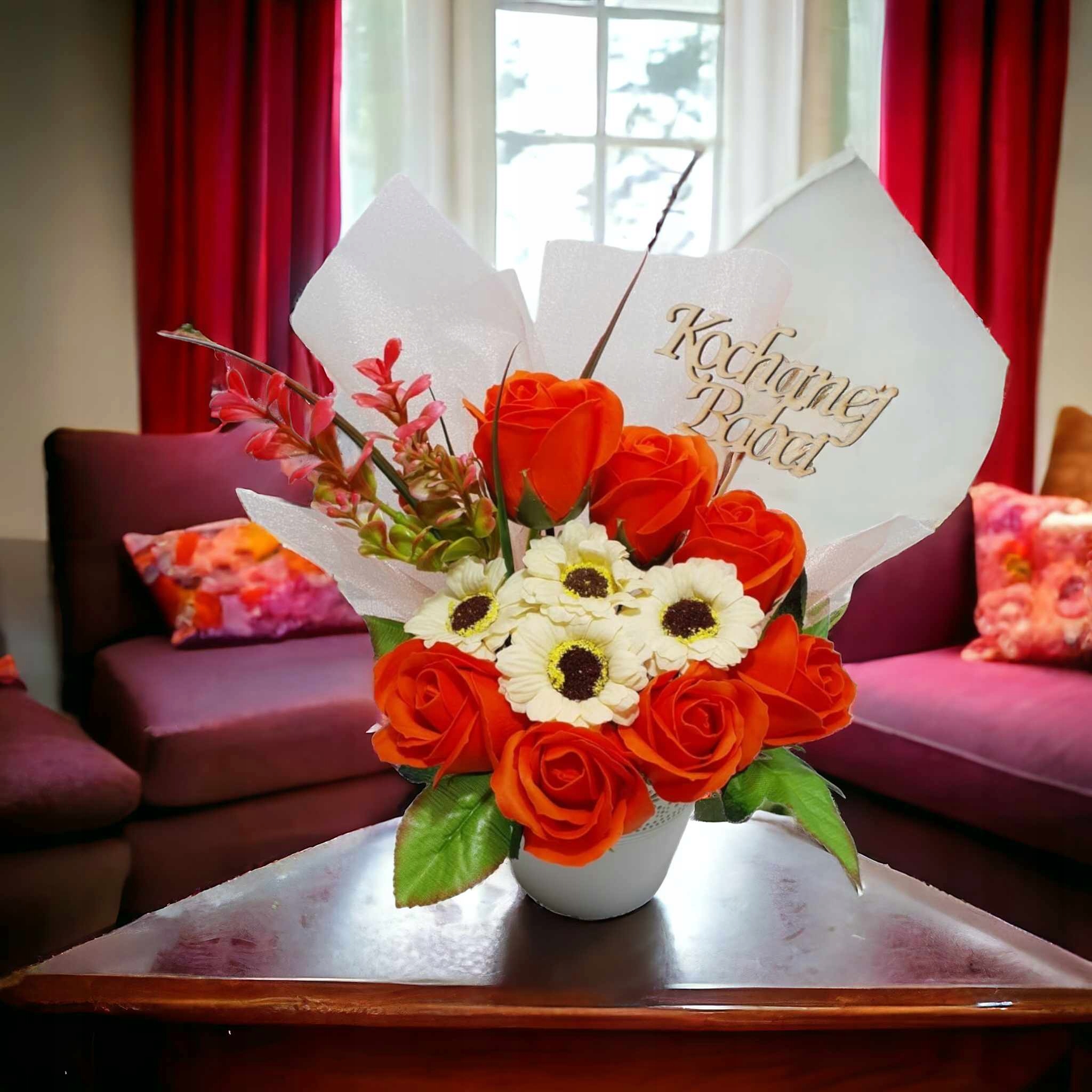 Букет із трояндами та іншими мильними квітами — ідеальний подарунок для коханої людини або гарна прикраса для вашого дому чи офісу .