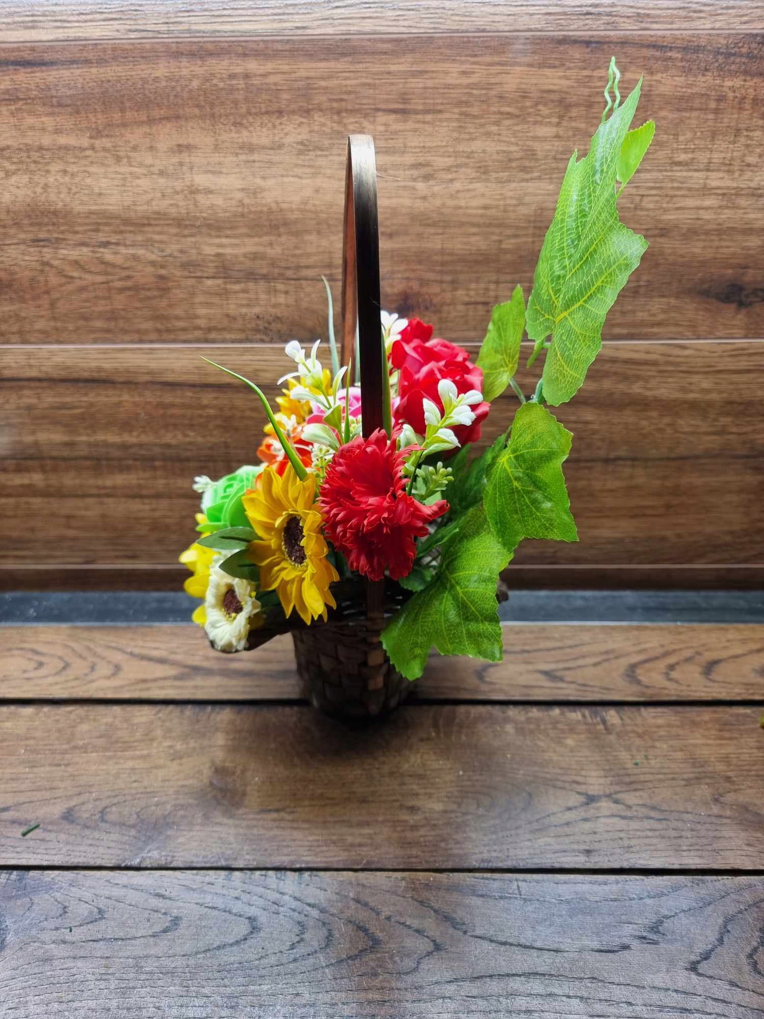 До продажу пропонуємо декоративний кошик з красивими мильними квітами, які не тільки прикрасять ваш інтер'єр, але і наповнять його ніжним і приємним ароматом. Кошик виготовлений з високоякісних матеріалів, що гарантує довговічність та естетичний зовнішній вигляд.
