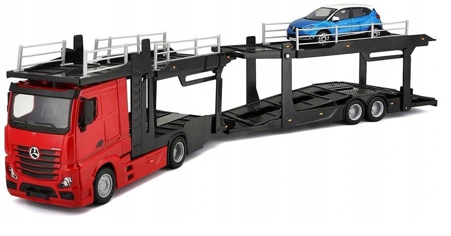 автомобілі bburago - унікальні моделі, які повинні бути включені до колекції молодого любителя автомобілів. Кожен з них - це ідеально відтворена копія реального транспортного засобу. Червона вантажівка з евакуатором у масштабі 1:43 під mercedez-benz ліцензія-це справжнє частування для великих та малих колекціонерів. Він характеризується надзвичайною допомогою, яку можна побачити у кожній деталі транспортного засобу. Металевий транспортний засіб, намальований двигуном лаку. Прикладний трейлер з двома для нього може бути розстебнутий, а верхній рівень може бути опускається. На буксируванні буде розміщено 6 пасажирських автомобілів Bburago за 1:43. Синій renault captur . Продукт був створений в Італії, має європейські сертифікати безпеки, гарантії довгих та захоплюючих розваг.