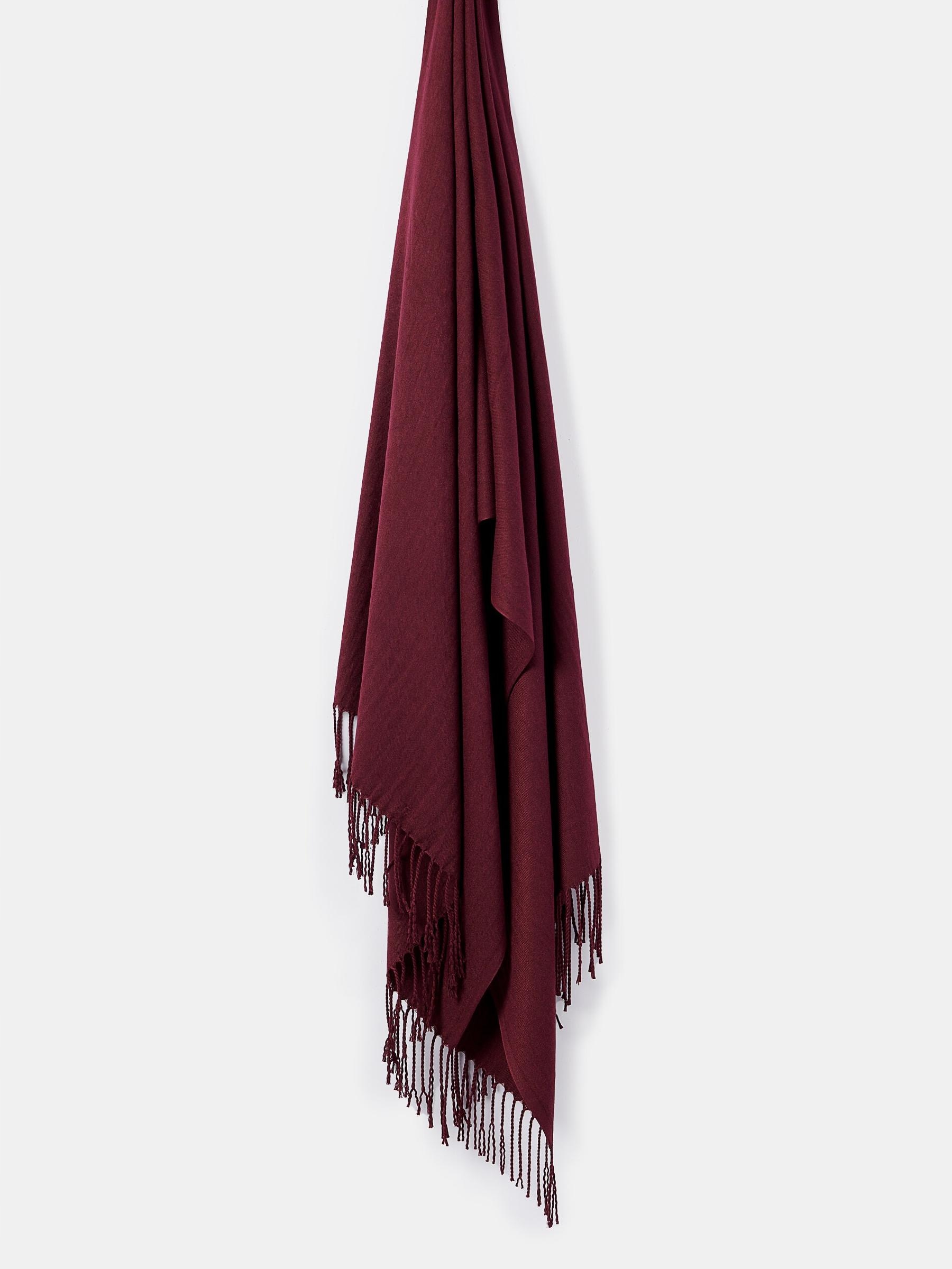 Бургундський класичний гладкий шарф з декоративною бахромою