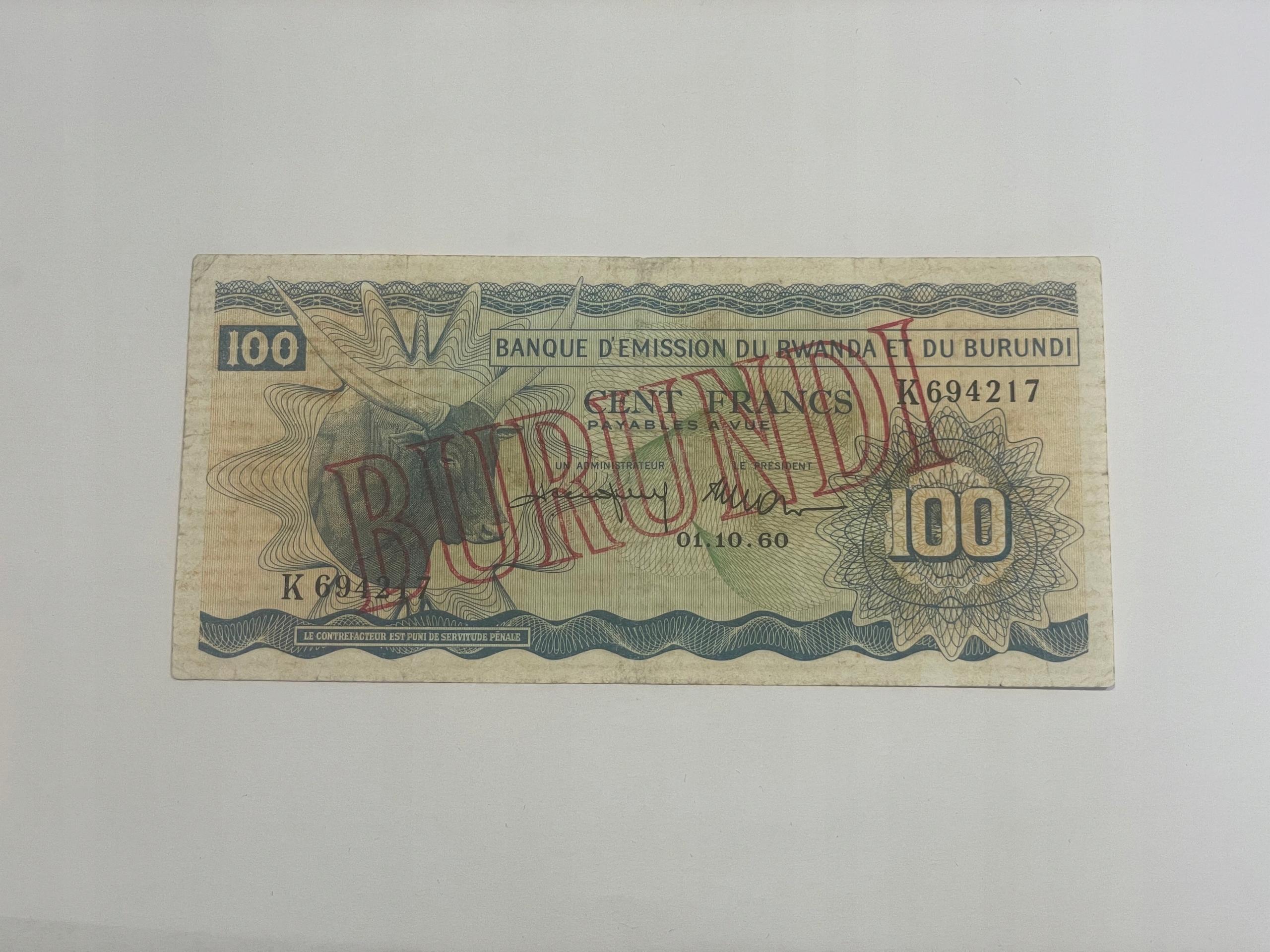 Burundi - 100 franków - 1960 - bardzo rzadki