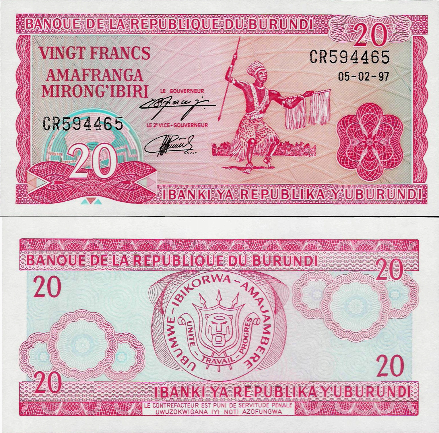 Burundi 1997 - 20 francs - Pick 27 UNC