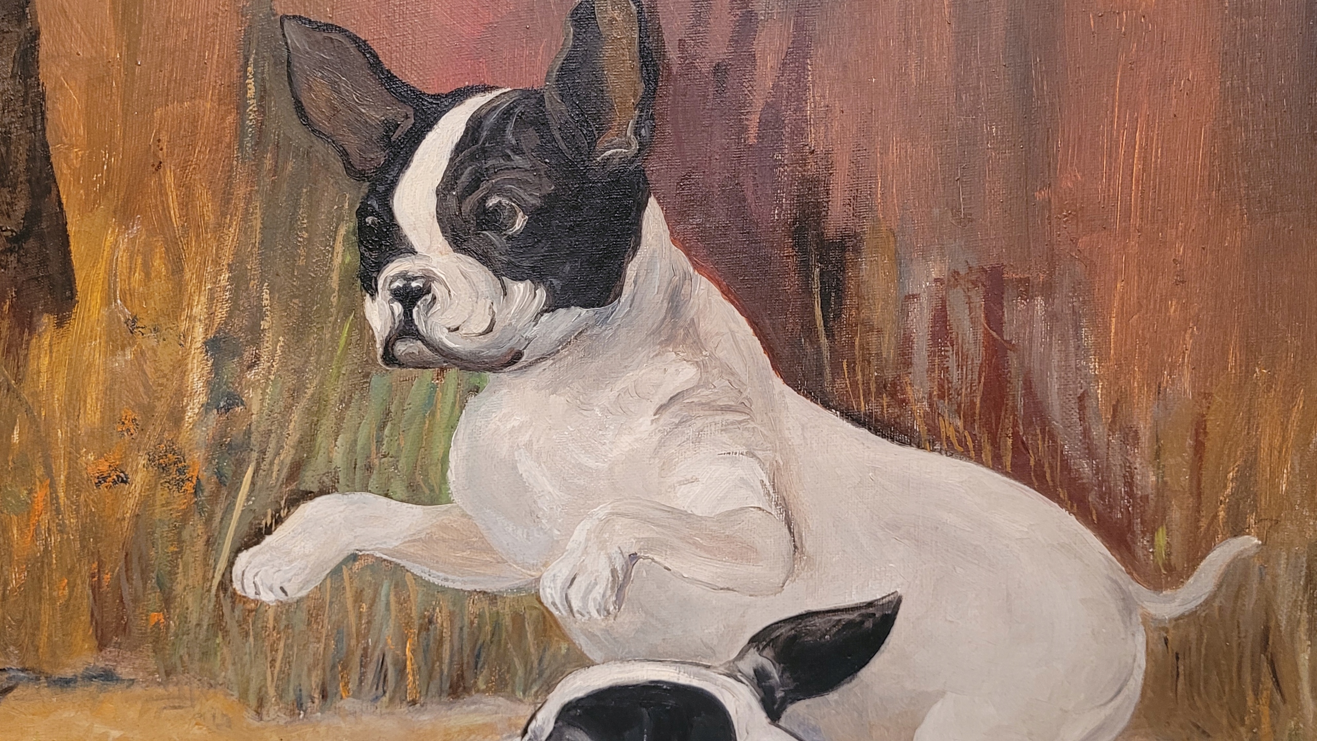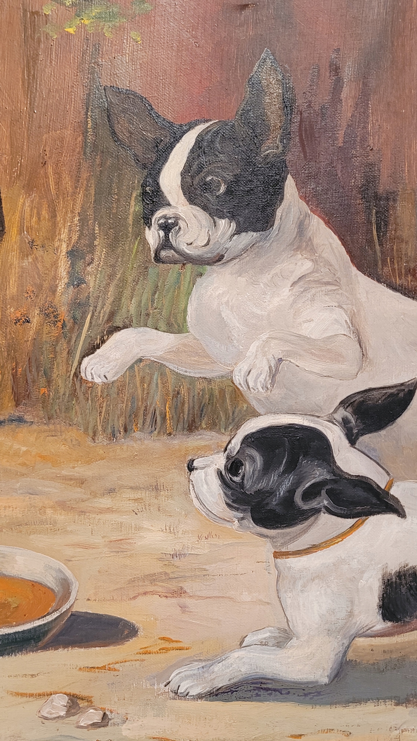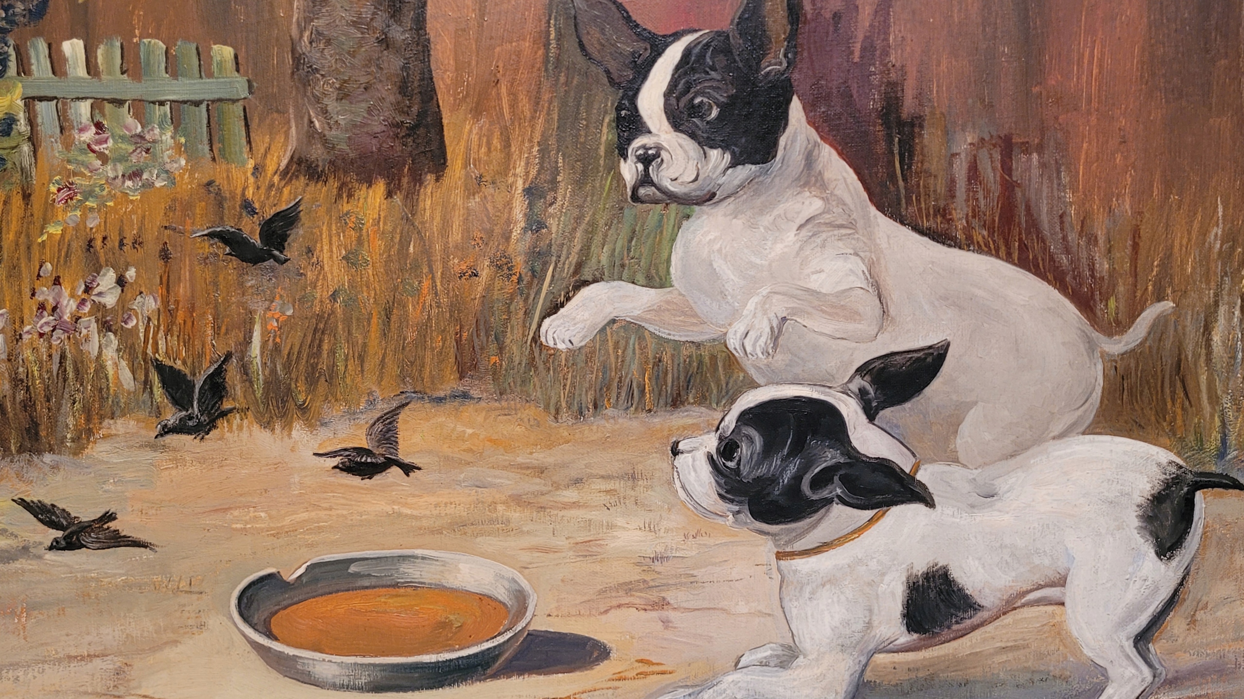 Продається гарна старовинна картина маслом "ДВА СОБАКИ".