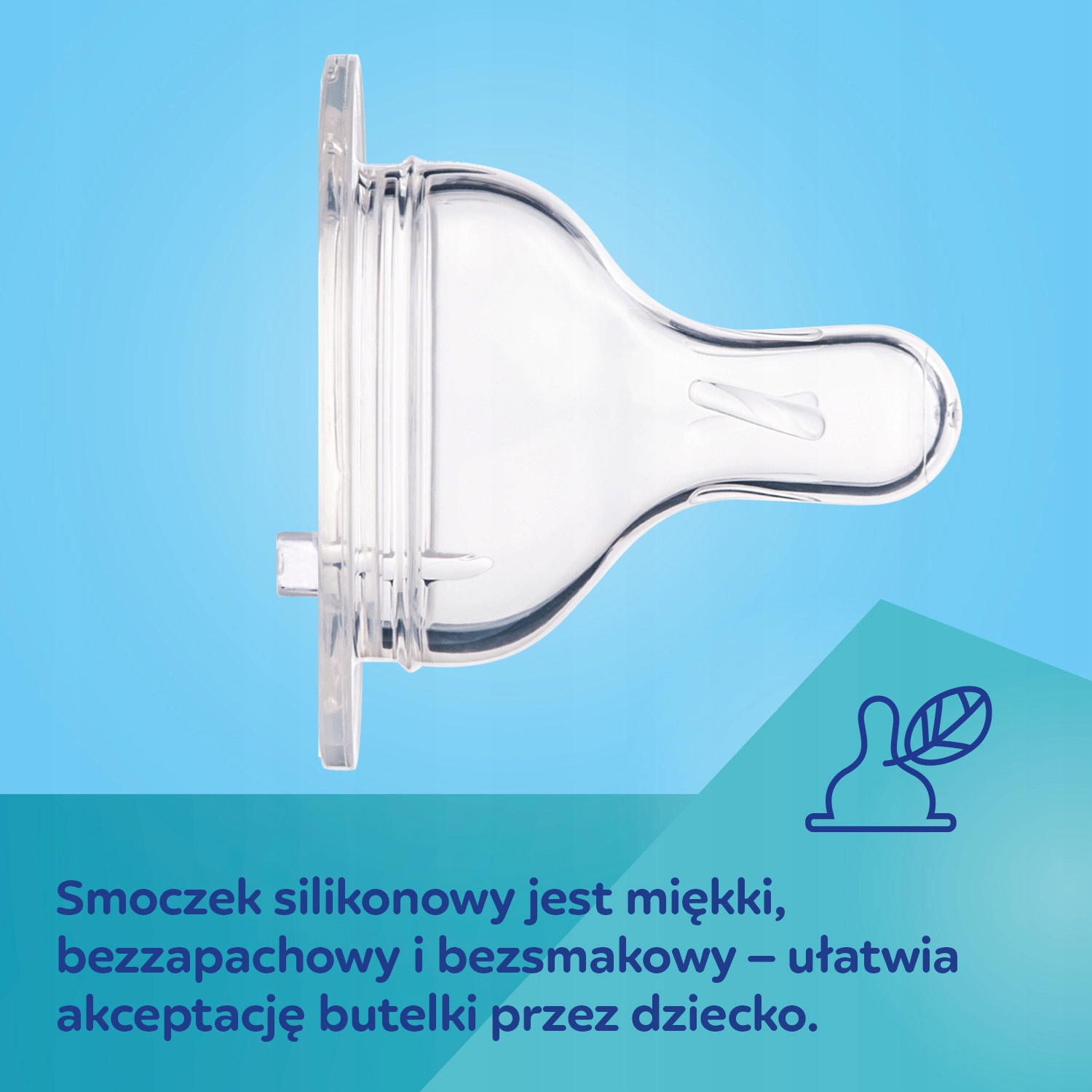 Він не має запаху та смаку, що полегшує сприйняття пляшечки дитиною, а його форма нагадує груди матері, що дозволяє чергувати годування – годування грудьми та годування з пляшечки.