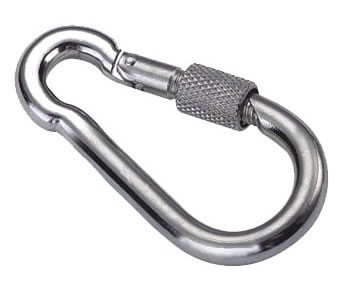 Найчастіше використовується як елемент для з'єднання мотузок, ланцюга. Стійкий до вологи, іржі, оцинковано. Додатковий захист від незапланованого відкриття.
