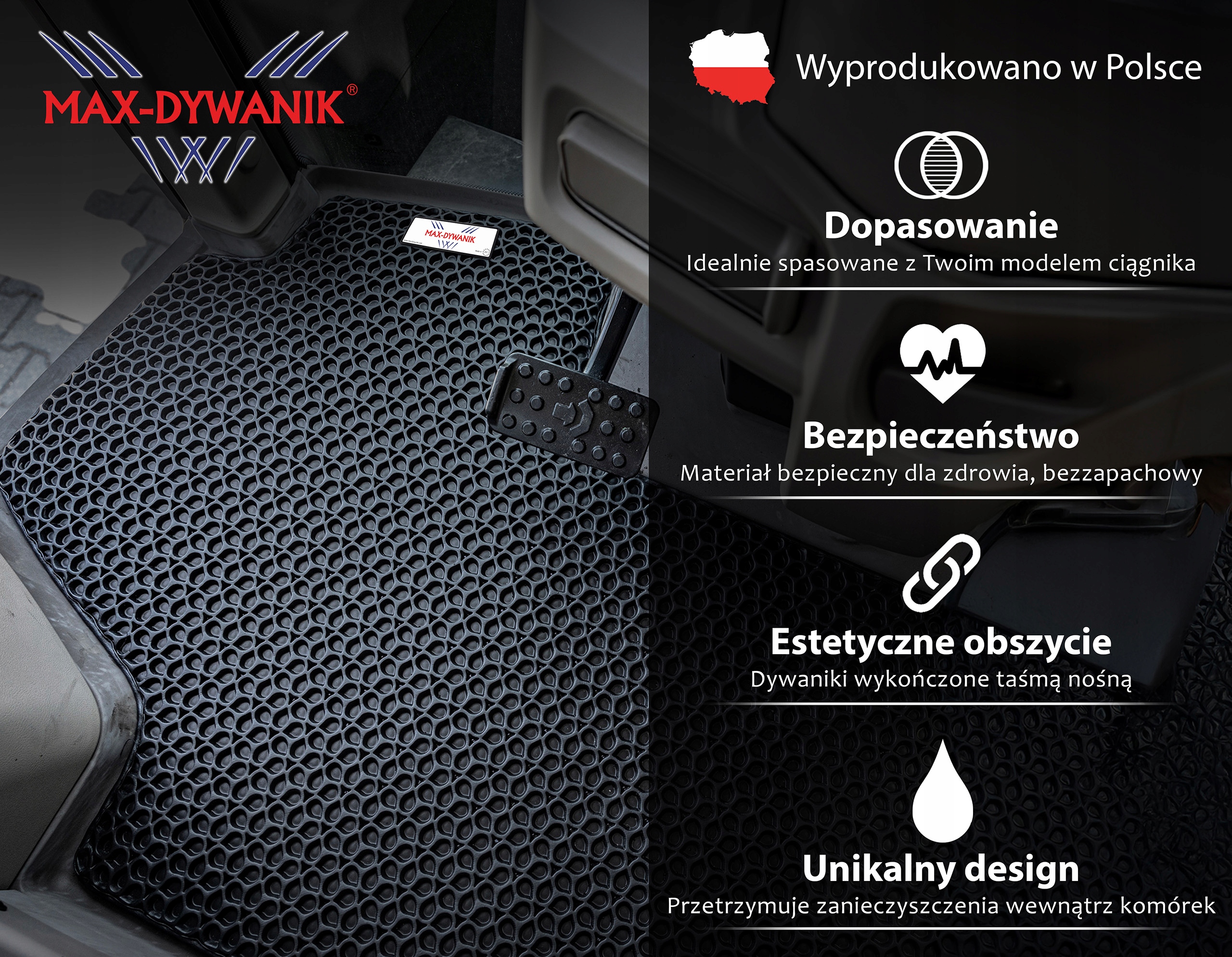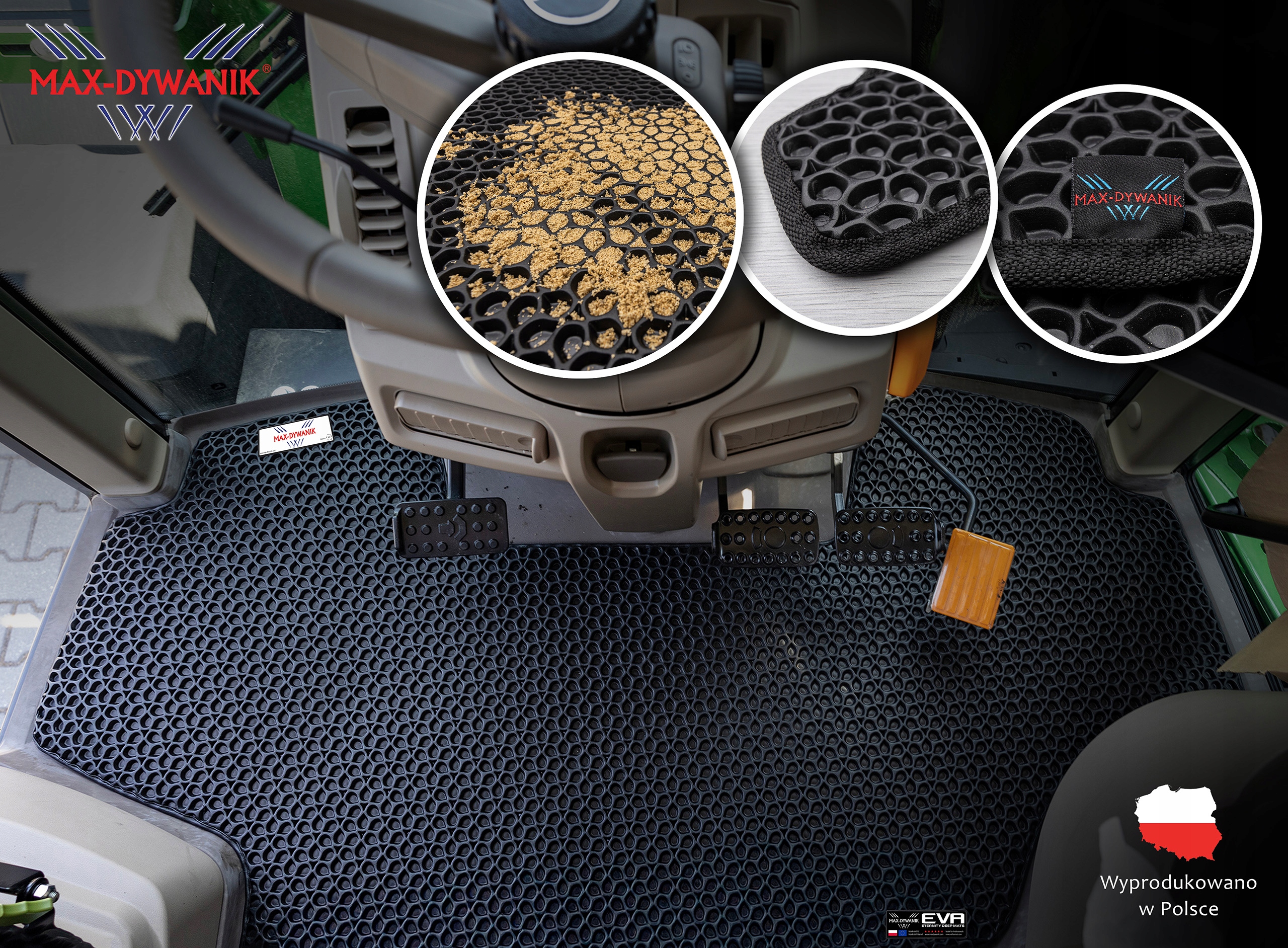 Предметом пропозиції є килим EVA серії EVA Eternity Deep Mats виробництва відомої польської компанії MAX-DYWANIK. Призначений для сільськогосподарської техніки, виготовлений з унікальним малюнком краплі води, який ефективно утримує домішки всередині клітин, забезпечуючи чистоту та порядок. Килимок оброблений естетичною чорною стрічкою - гарантія якості та точності виконання.