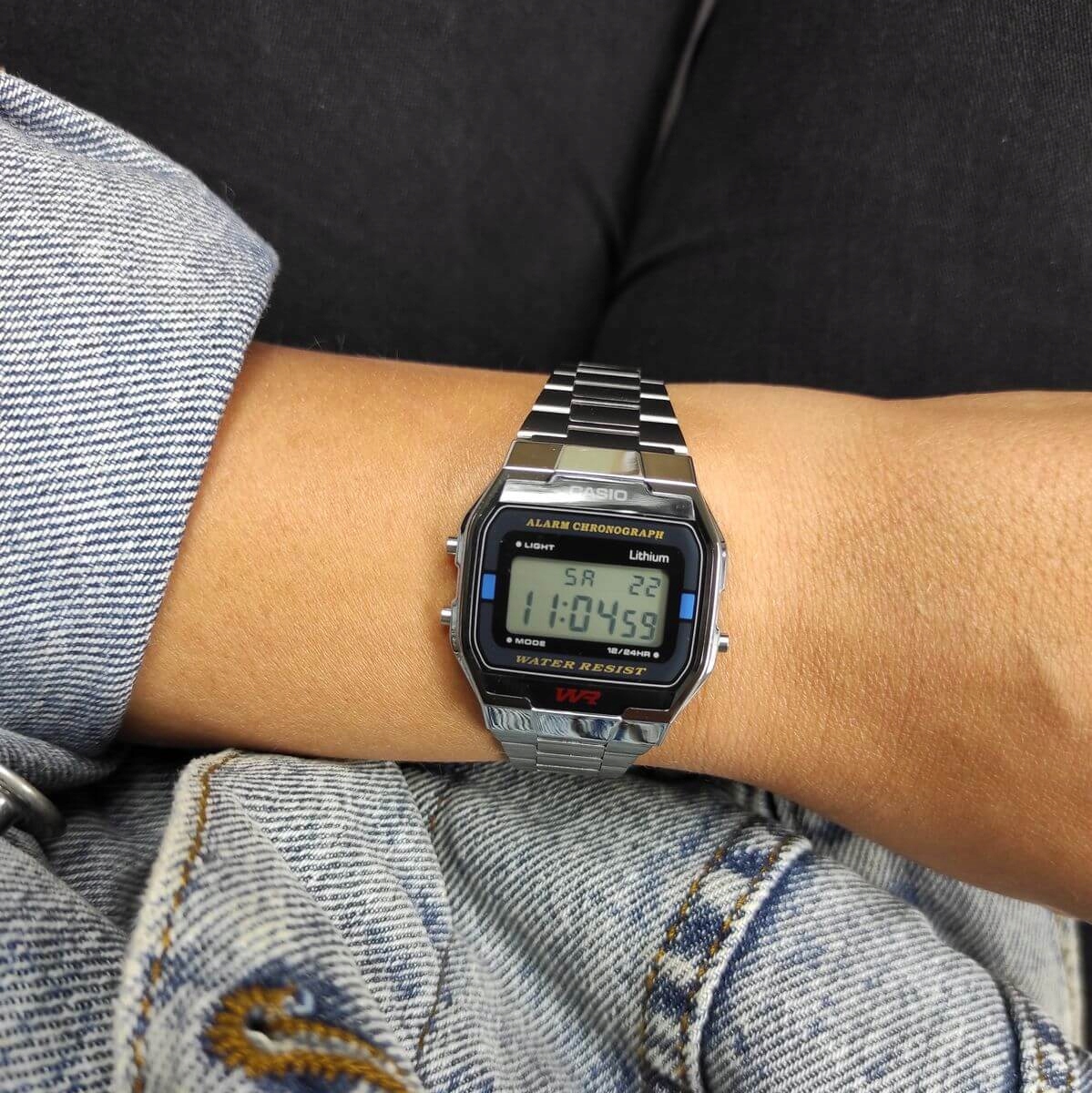 Casio A163WA-1QES Sport A163WA 1QES — універсальний спортивний годинник, ідеальний як для чоловіків, так і для жінок. Олдскульний стиль годинника створений за зразком перших електронних годинників. Годинник Casio A163WA-1QES має сріблясто-чорний дизайн і виготовлений з високоякісного пластику - корпус і антиалергічної нержавіючої сталі - браслет. Всередині характерного прямокутного корпусу знаходиться кварцове механічне серце, що живиться від акумулятора з тривалим терміном служби 7 років. Електронний циферблат оснащений світлодіодним підсвічуванням, тому ви можете контролювати час в темний час доби. Циферблат моделі Casio A163WA-1QES захищений від пошкоджень гнучким синтетичним склом. Годинник Casio A163WA-1QES має корисні додаткові функції, такі як: один щоденний звуковий сигнал, секундомір, що вимірює час з точністю до 1/100 секунди, дисплей дати, що вказує точну дату, і безстроковий календар, який автоматично регулює дату в разі коротших місяців і подвійний режим вимірювання часу - 12 і 24 години. Годинник Casio A163WA-1QES також водонепроникний до 30 м (3 атм), що захищає його від дощу та бризок.