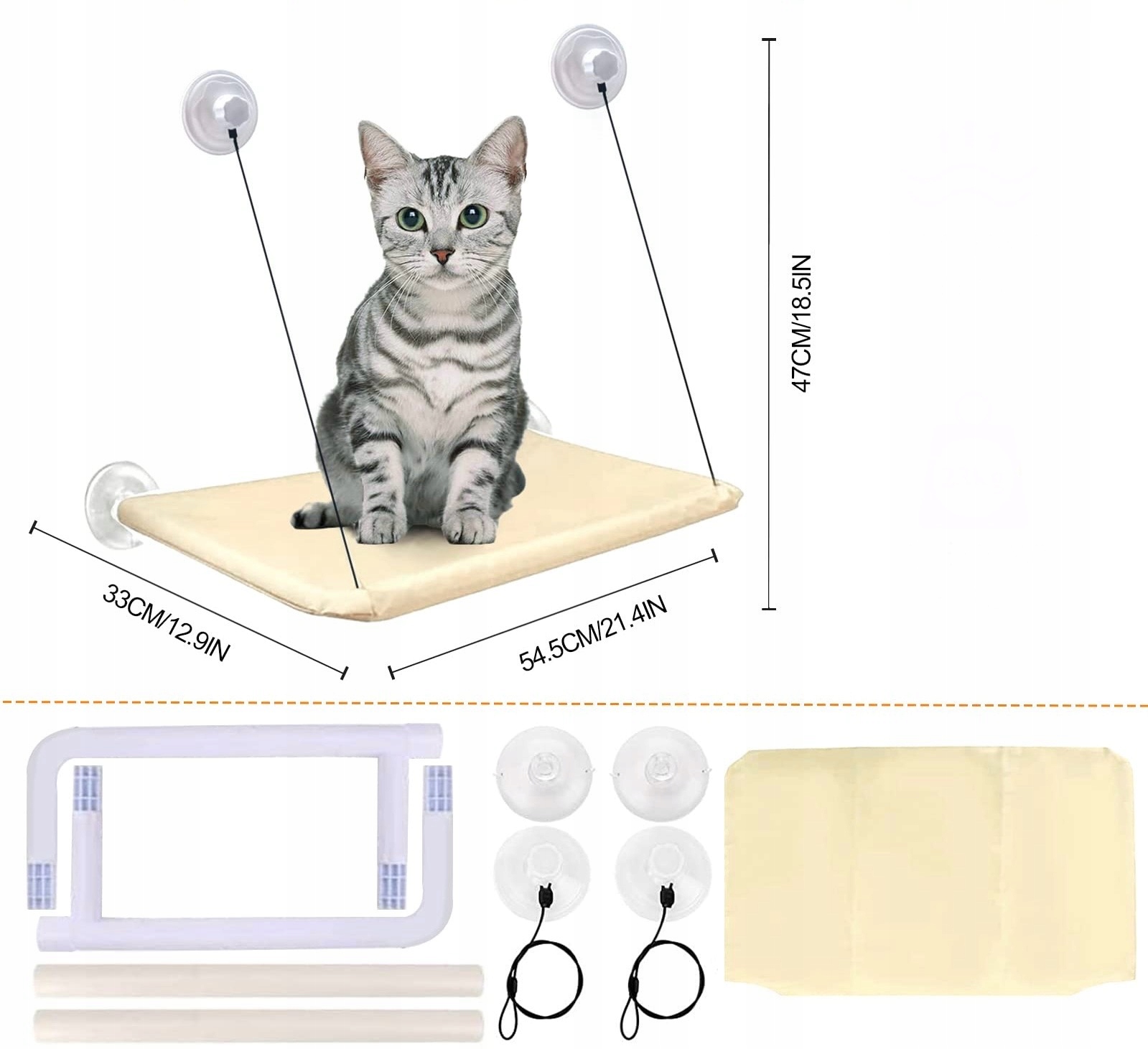Легка установка гамаків для кота має достатньо місця для котів, щоб насолодитися сонцем та пейзажем за вікном (54 х 30 см). Він може бути встановлений на будь -якій гладкій поверхні за кілька секунд без використання інструментів. (Порада: Взимку ви можете використовувати гарячу воду для замочування та пом'якшення присосної чашки, завдяки чому присоску має більше всмоктування)