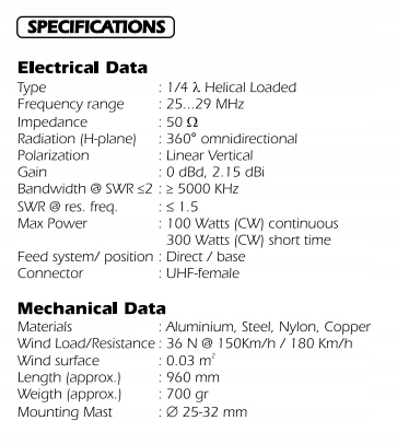 Покупая «Антена Sirio 1/4 хвилі Thunder base CB», вы получите заказываемую вещь из каталога «Базовые» в срок 5-7 дней после оплаты. Товар будет доставлен из Европы, проверен на целостность, иметь европейское качество.