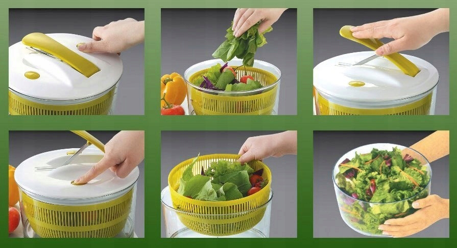 Функціональний осушувачдля швидкого центрифугування надлишку води з вимитих овочів.