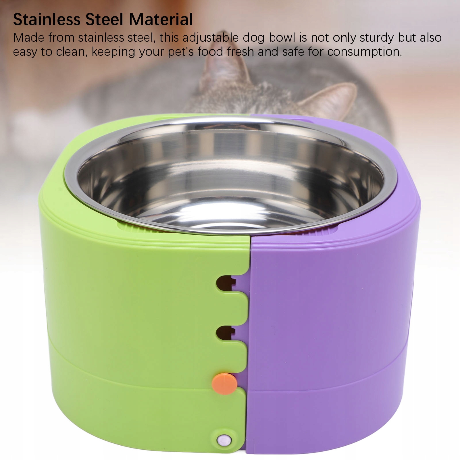 2. Матерія з нержавіючої сталі: Ця регульована чаша для собак, виготовлена з нержавіючої сталі, не тільки тверда, але й атдва для прибирання, завдяки якій їжу вашого вихованця свіжа і безпечна їжа.