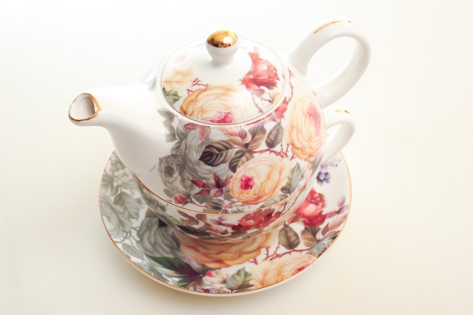 Дуже оригінальний порцеляновий набір, що складається з глечика та чашки з тарілкою, прикрашеною мотивом троянди. Все упаковано в подарункову коробку - ідеально підходить як подарунок. While brewing the tea, you can leave the jug on the cup to warm it, this way the tea remains warm for longer.