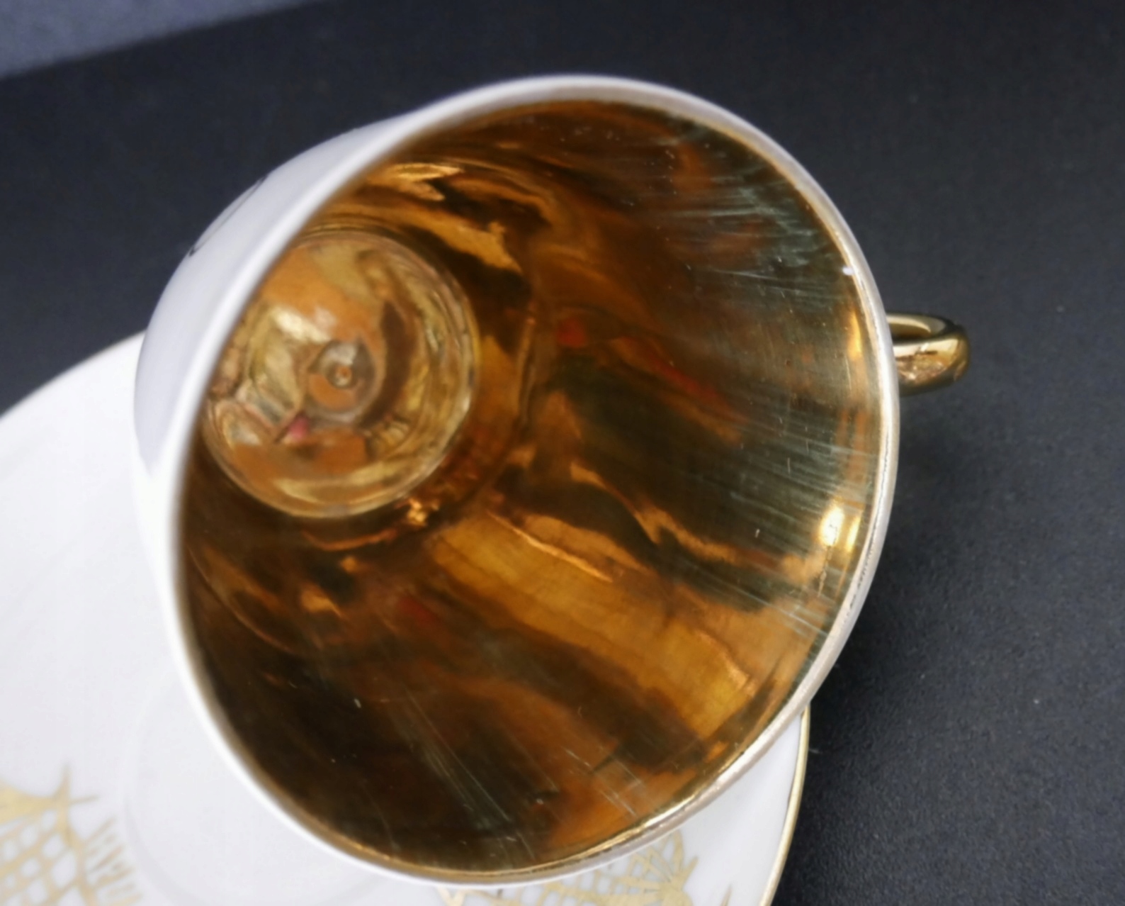білий, масивна порцеляна, позолочена внутрішня частина чашки