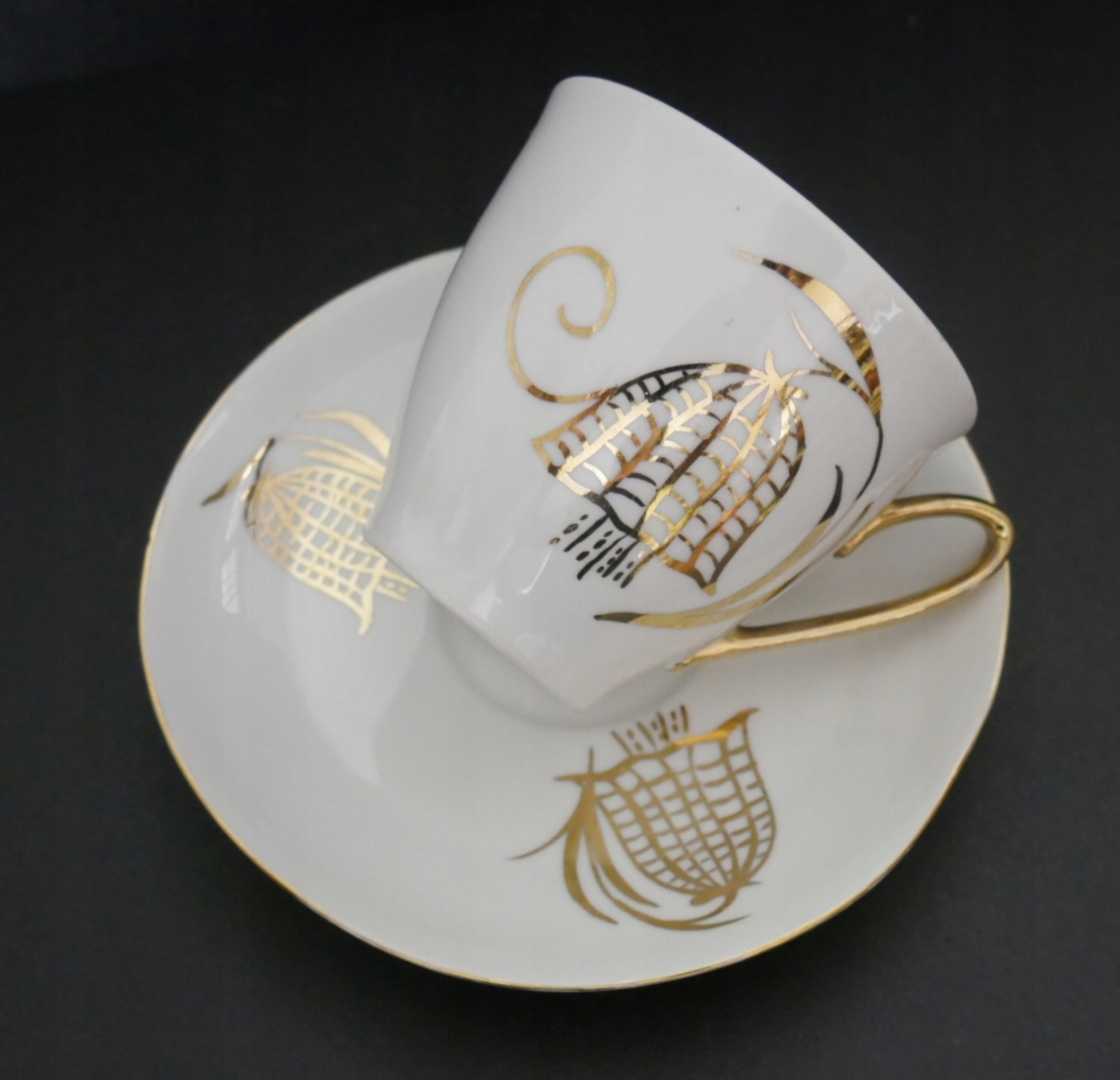 Wałbrzych Cup with stand Ćmielów, подібні золоті візерунки