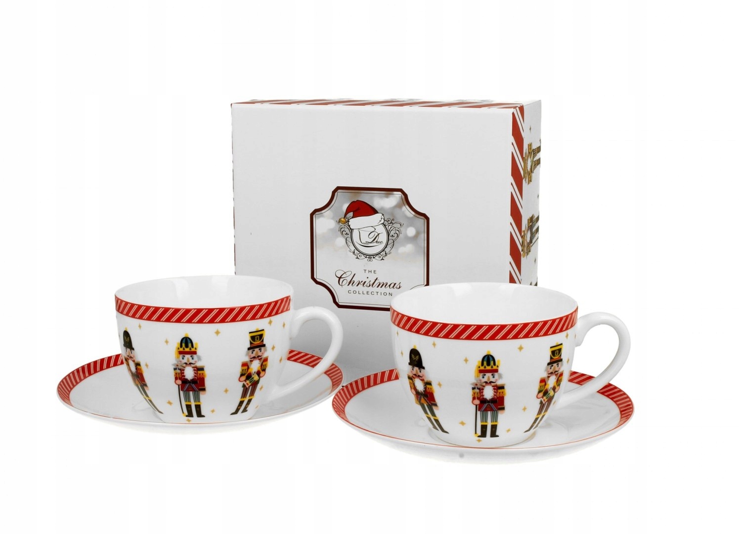 Набір із двох чашок із блюдцями об’ємом 280 мл NUTCRACKERS, що входить до серії Christmas, характеризується натуральним кремово-білим кольором із ніжним блиском та винятковою міцністю та довговічністю, зберігаючи при цьому легкість та витонченість.