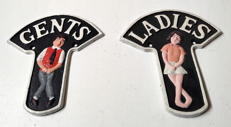 Предметом продажу є декоративні таблички для туалету (комплект 2шт). Створено сьогодні з чавуну. Вони прикрасять і чітко повідомлять, що там є місце для задоволення ваших фізіологічних потреб.