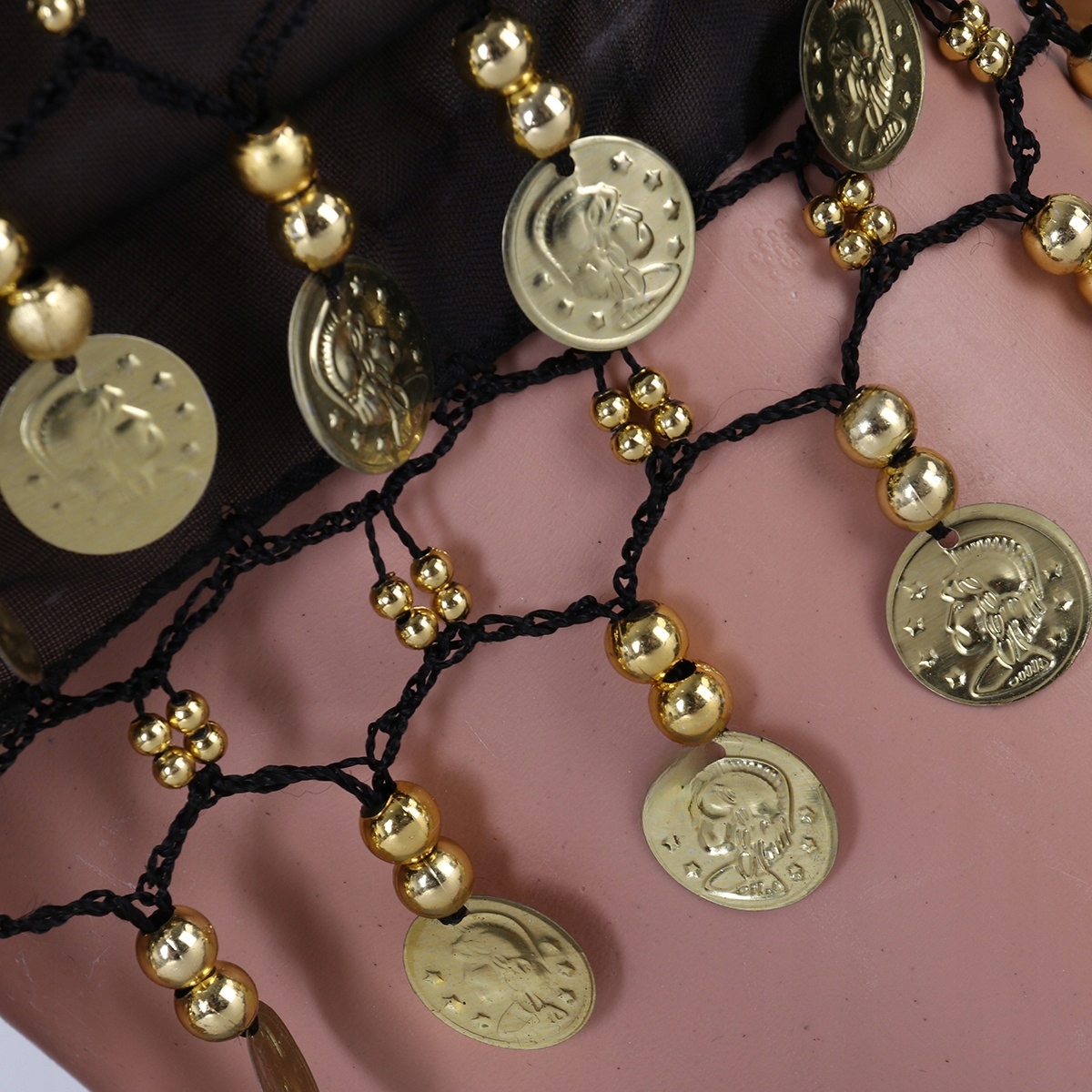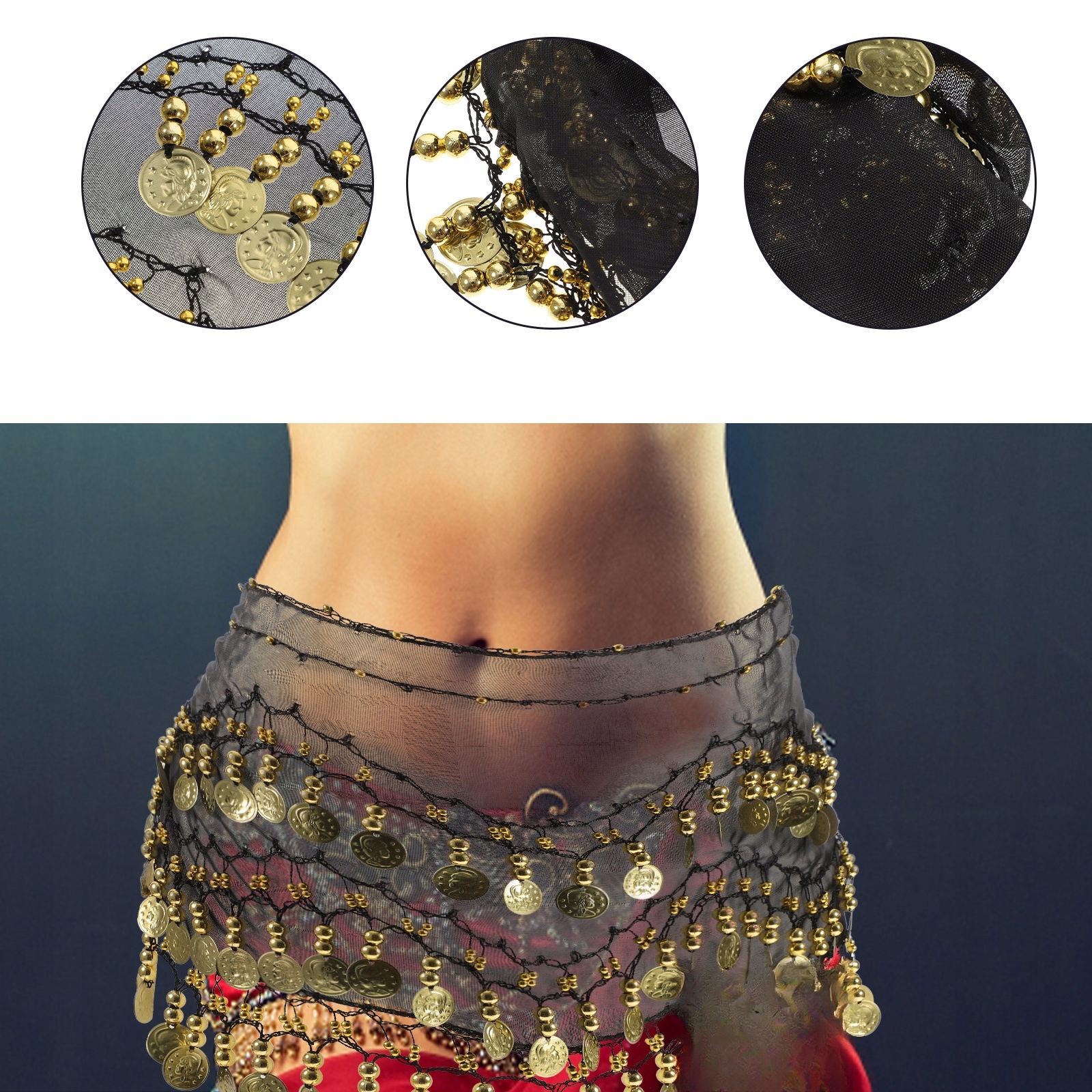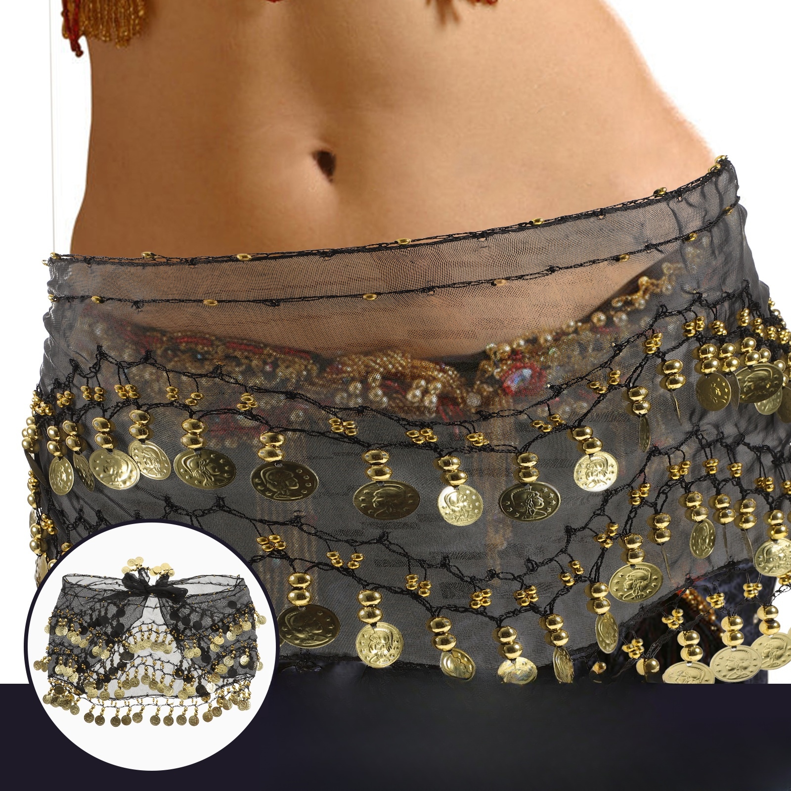 ✅Це шифоновий шарф на стегнах, на якому висить 128 монет. Він може видавати звук, коли ви трясете тілом. Монети щільно пришиті до шарфа