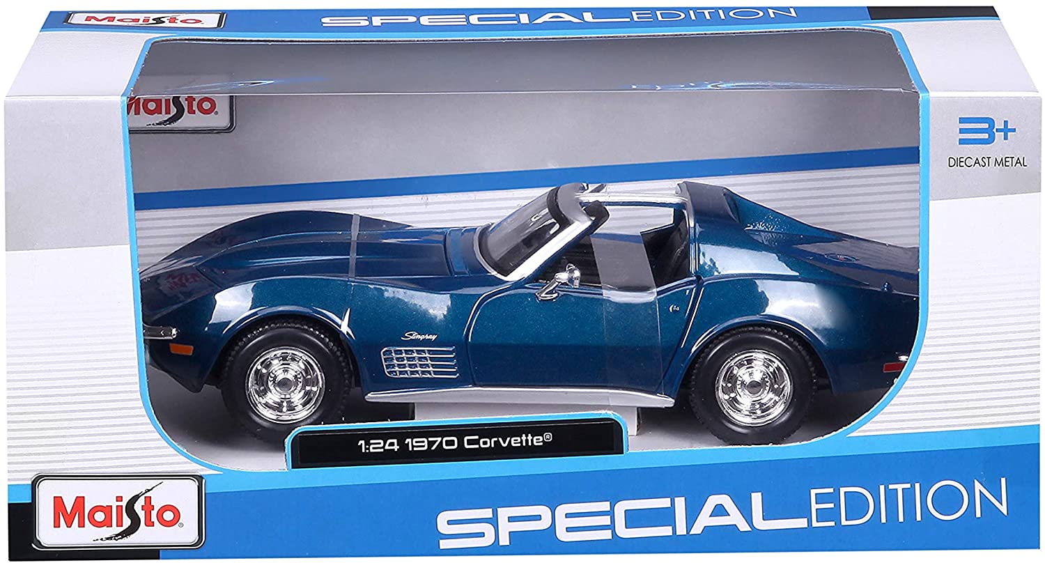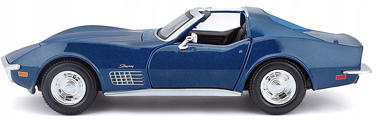 Металева модель колектора Chevrolet Corvette C3 Stingray T-Top з 1970 року за шкалою 1/24, виробленою відомою, оціненою та авторитетною компанією Maisto. Синій