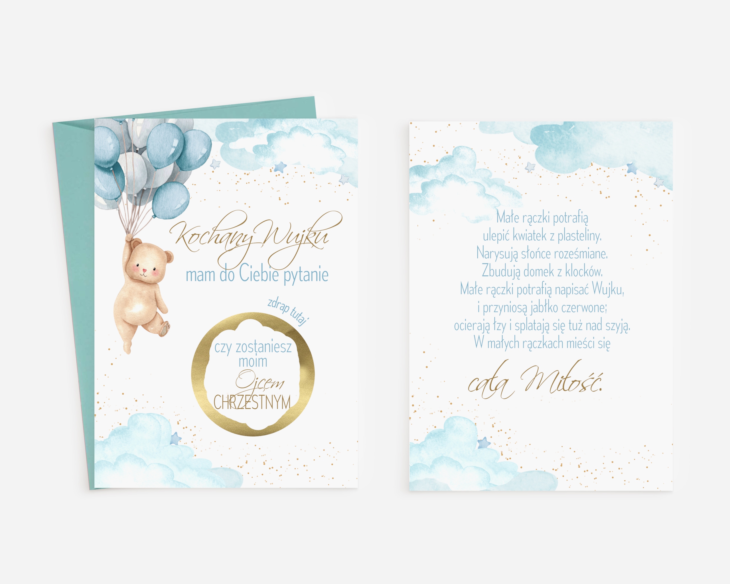 Набір скретч-карток: одна для моєї тітки та одна для мого дядька, із запитанням, чи будете ви моєю хрещеною матір’ю чи моїм хрещеним батьком.