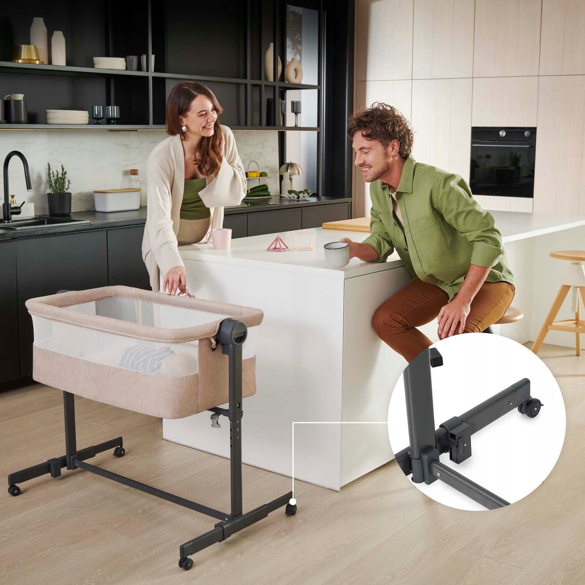 Завдяки чотирьох колесах з ліжковим гальмом ви можете легко переходити з кімнати в кімнату. Це дозволить вам піклуватися про свою дитину і тримати близько з малюком у різний час дня: від сну біля вашого ліжка до дрімоти в день у квартирі.