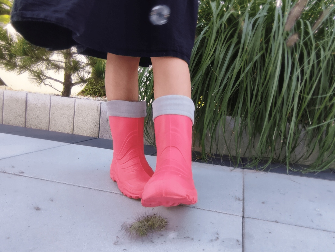 Зручні та функціональні поролонові брюки з грілкою. Призначений для дітей, які люблять грати на свіжому повітрі, незалежно від погоди. Взуття має сертифікат HEALTHY FOOT, який присуджується взуттю, яке відповідає найвищим стандартам правильного розвитку дитячих ніг. Внутрішня підкладка забезпечує тепло і комфорт і захищає ніжки дитини від холоду і вологи. Черевики Wellington легко підтримувати в чистоті - просто промийте їх теплою водою з м'якими миючими засобами (рідке мило, засіб для миття посуду) і висушіть при кімнатній температурі. Міцне, стійке до пошкоджень взуття витримає всі виклики дитячої діяльності. Рожевий колір. Висота: 19,5 см (в розмірі 32/33). Вага: 300 г (в розмірі 32/33). Матеріал черевиків Веллінгтон: високоякісна піна EVA. Піна EVA зручна для дітей, надзвичайно легка, м'яка, еластична, чудово поглинає удари під час ходьби, стійка до вологи, цвілі та бактерій, зберігає гнучкість навіть при низьких температурах (-30°C) . Матеріал нижнього костюма: 100% поліестер (ручне прання/сушіння в горизонтальному положенні). Конструкція: черевики Wellington суцільнопластикові, висота до середини ікри, верх декоративна фактура, чіткий протектор, утеплююча вставка з відкладним коміром. Застосування: для двору, прогулянок та ігор в парку, для поїздок в негоду. Завдяки цим резинкам кожна дитина зможе безперешкодно насолоджуватися іграми на свіжому повітрі цілий рік.