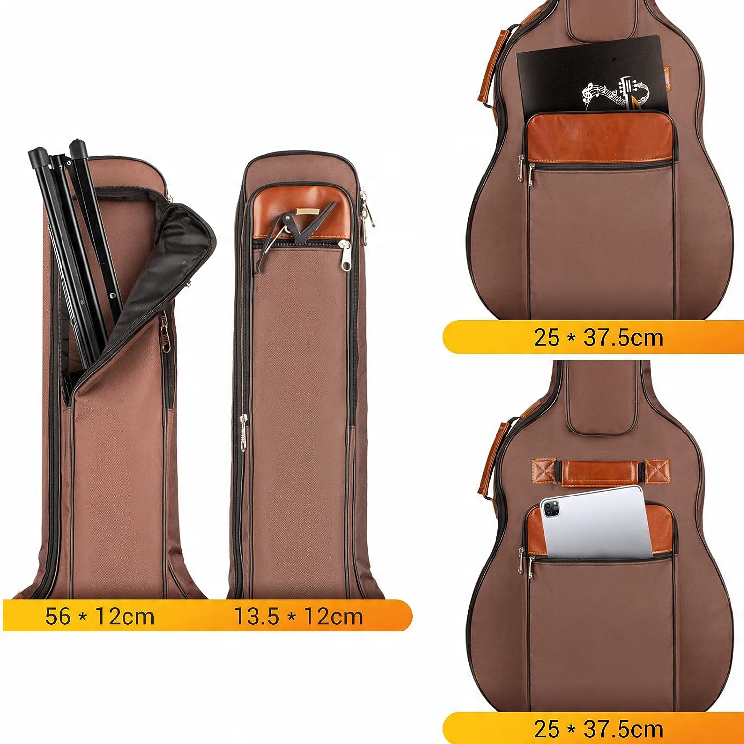 🎸 6 ЗОВНІШНІХ КИШЕНЬ: Сумка має 6 зовнішніх кишень, які забезпечують зручне зберігання нот, струнних, тюнерів, звукознімачів та інших аксесуарів.