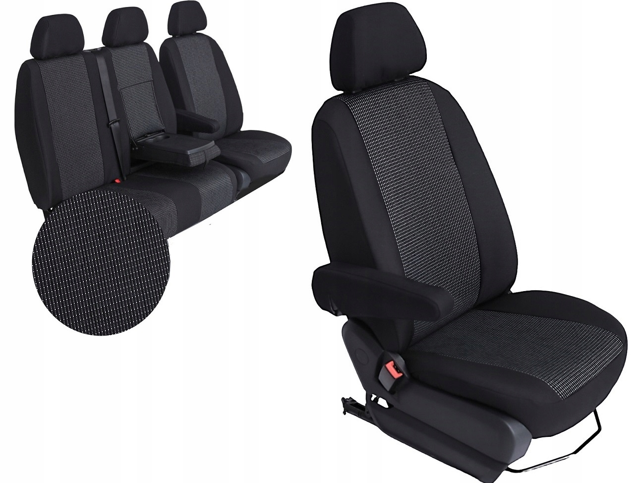 Чехли виготовлені з оббивної тканини в зоні сидіння та посиленої поліестерової тканини з боків і спинки сидінь. Вони ламіновані 3 мм пінополіуретаном і підкладкою, завдяки чому матеріал ідеально прилягає до крісел.
