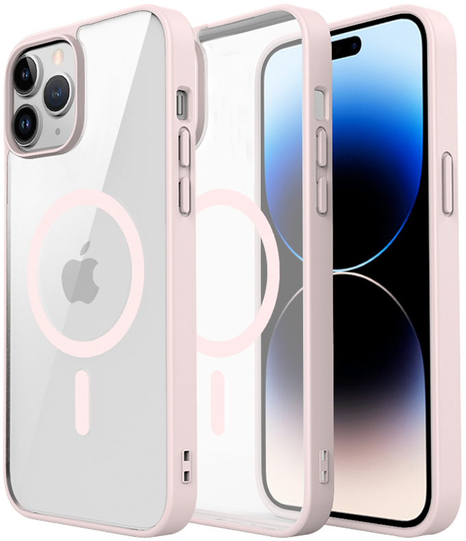 ЧОХОЛ ДЛЯ IPHONE 15 PRO, ПРОЗОРИЙ, МАГНІТНИЙ ДЛЯ MAGSAFE | РОЖЕВИЙ