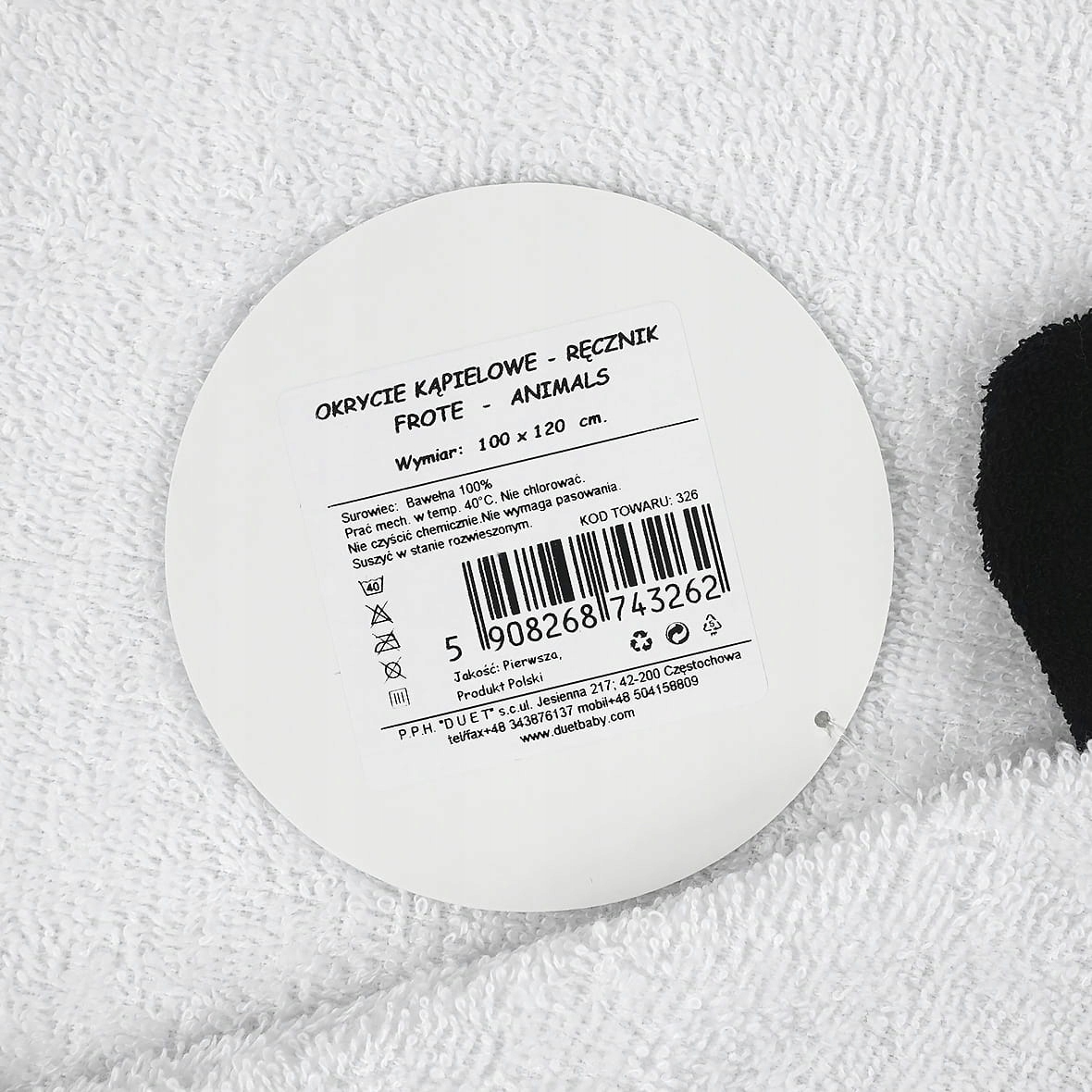 - виготовлений з м'якої махрової тканини 100% бавовна, приємний і приємний на дотик, ідеально підходить для чутливої дитячої шкіри