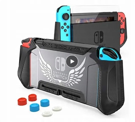✅ Розроблено для Nintendo Switch і ідеально поміщається в док-станцію, не знімаючи футляр. Чохол виготовлено з ТПУ і ПК, стійкий до ударів і подряпин.Ілюстративне фото.В комплект входить 1 шт. скло, гумки для великих пальців і корпус. Упаковка пошкоджена.