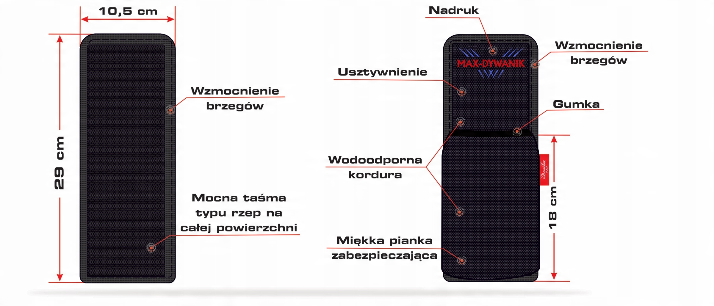 оснащений системою Velcro та графікою - логотипом Max-Dywanik.