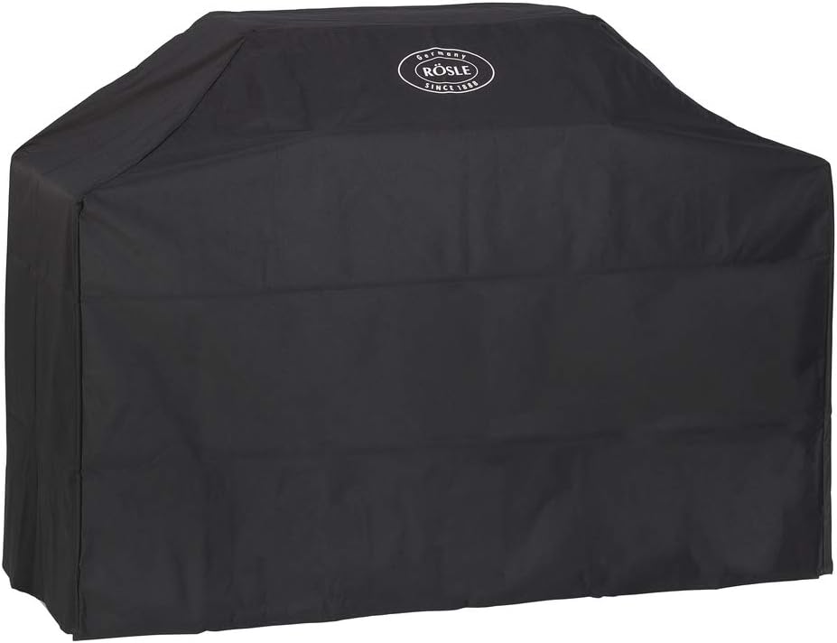 - Благородний чорний дизайн із білим логотипом RÖSLE – просте та стильне зберігання газового гриля