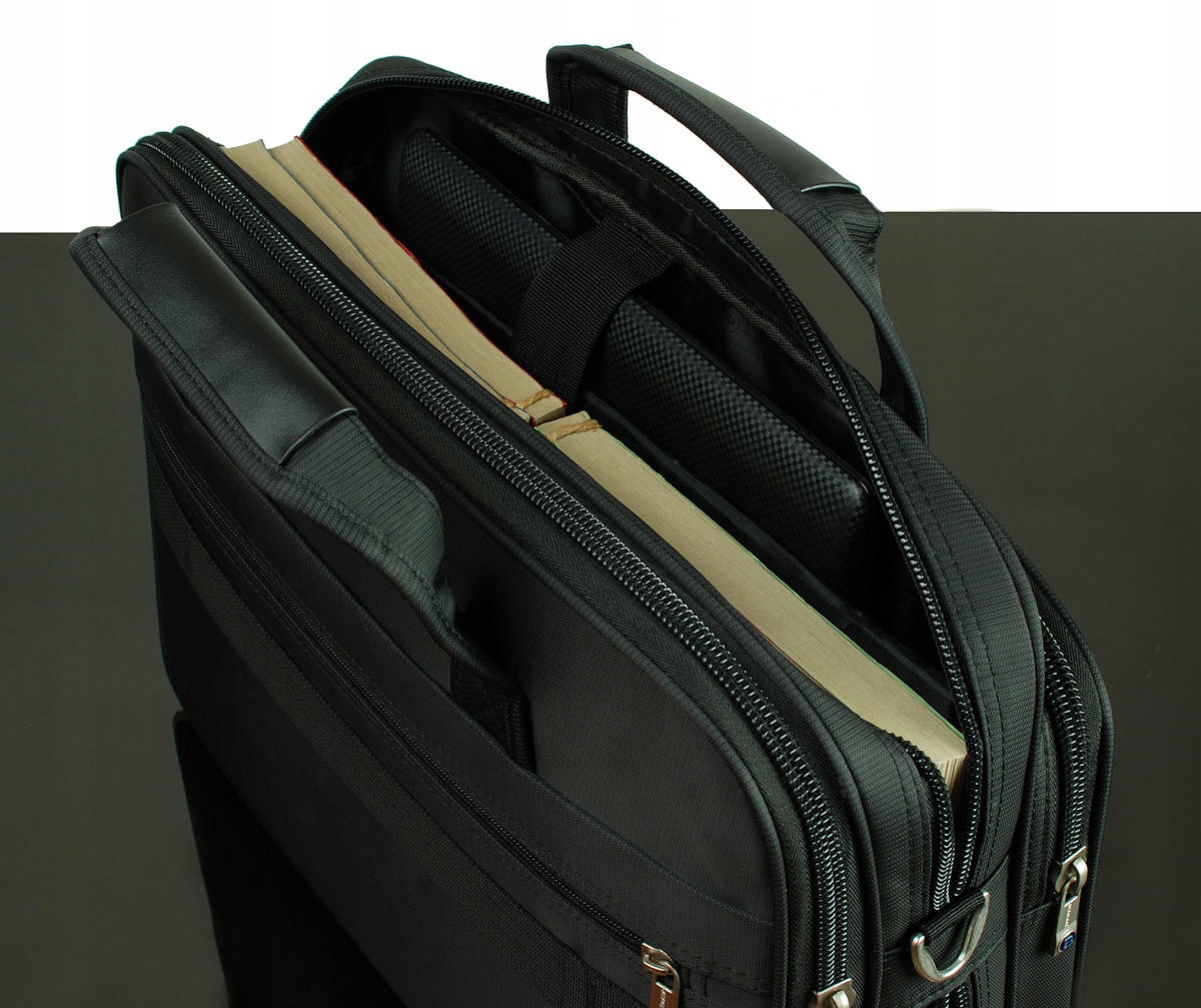 6-9 см і містить перегородку із застібкою на липучці 29 x 36 x 4 см. Ззаду є кишеня 30 х 40 х 3 см для документів, газет і одна менша на блискавці. Спереду є місце для ручок, телефону і т. д. Зовні, ззаду, потайна кишеня на блискавці, поруч місце кріплення для дорожніх валіз. Сумка