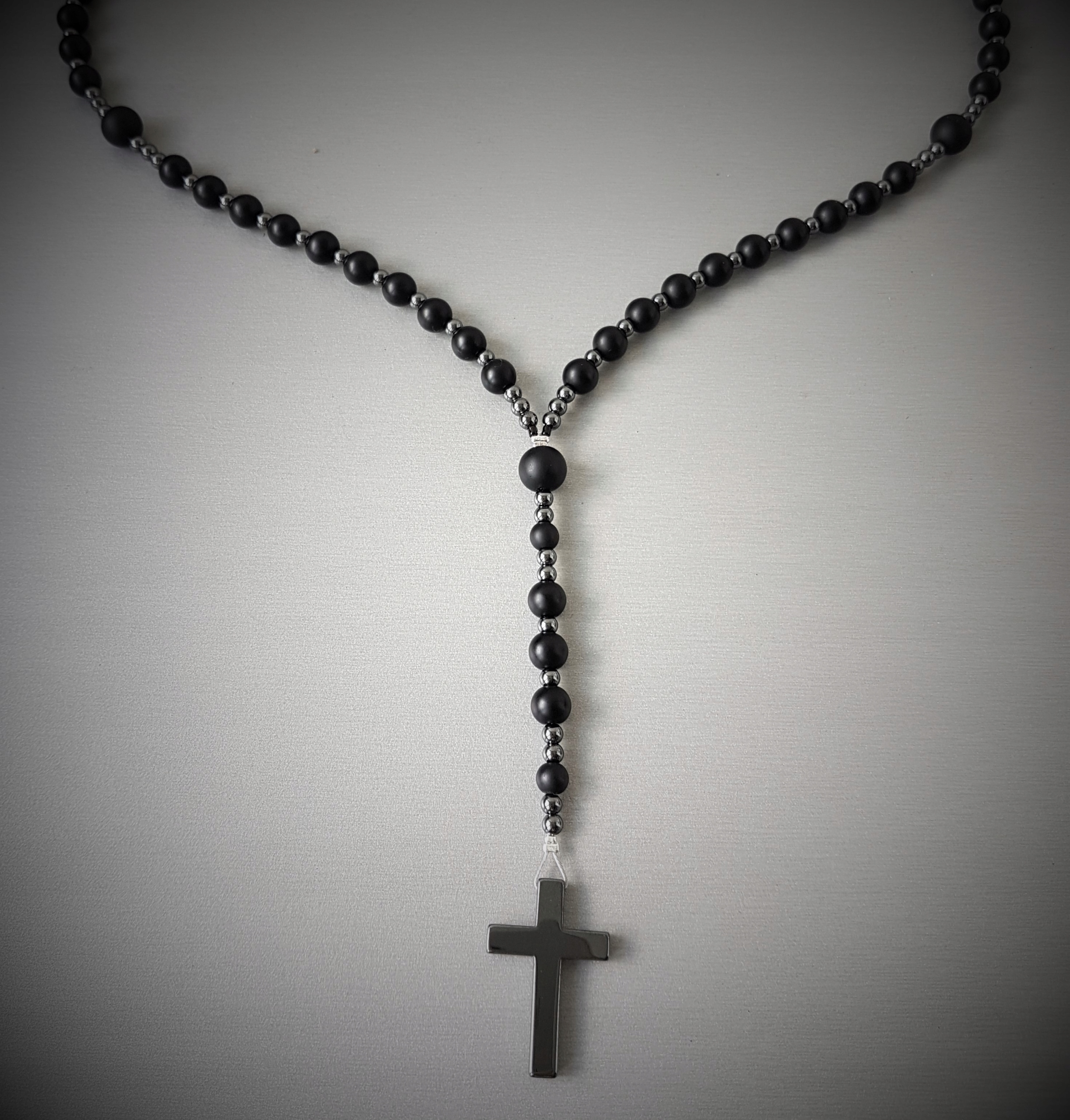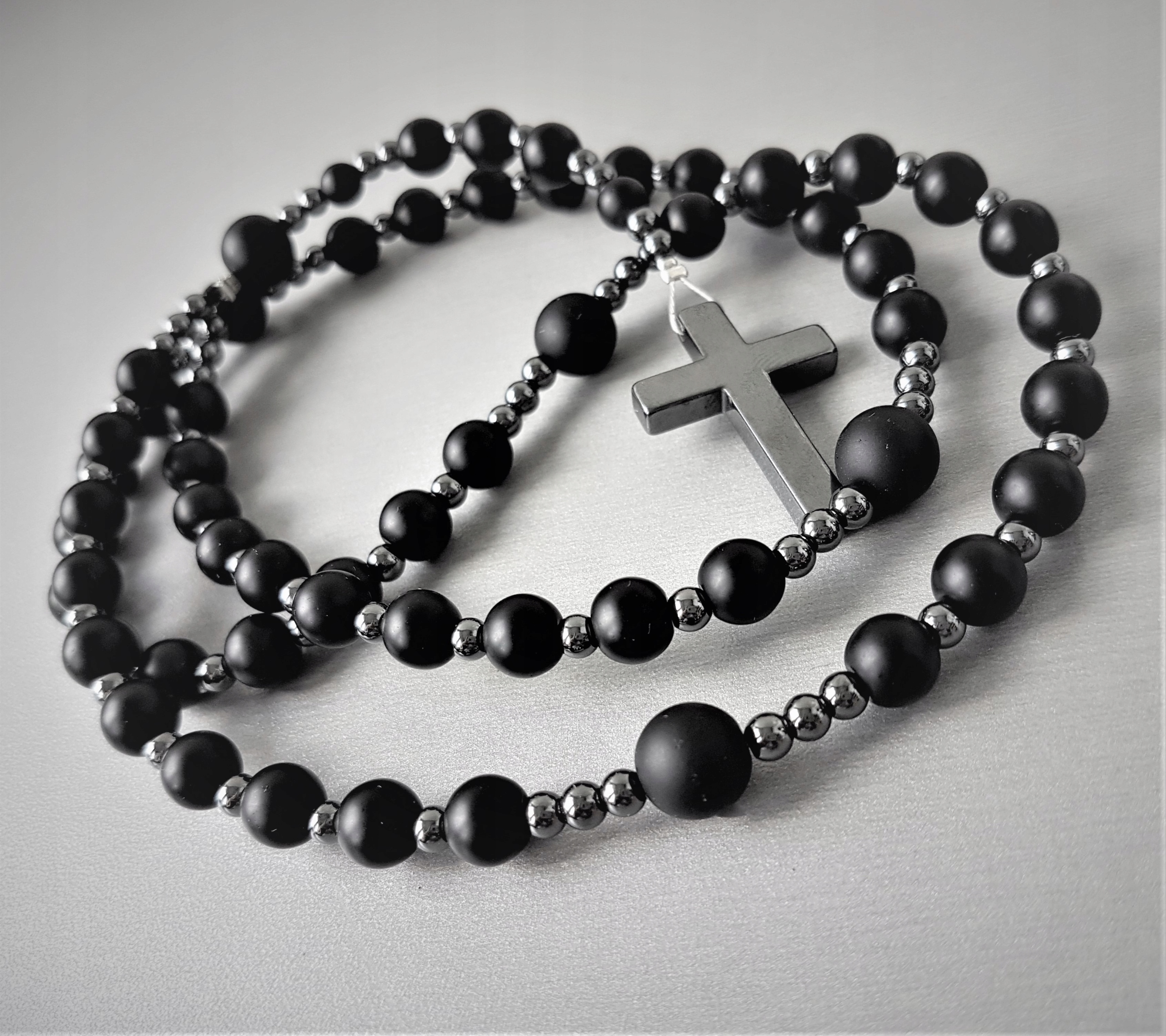 Чоловіче чудове намисто з онікс -розарії гематиту хрест