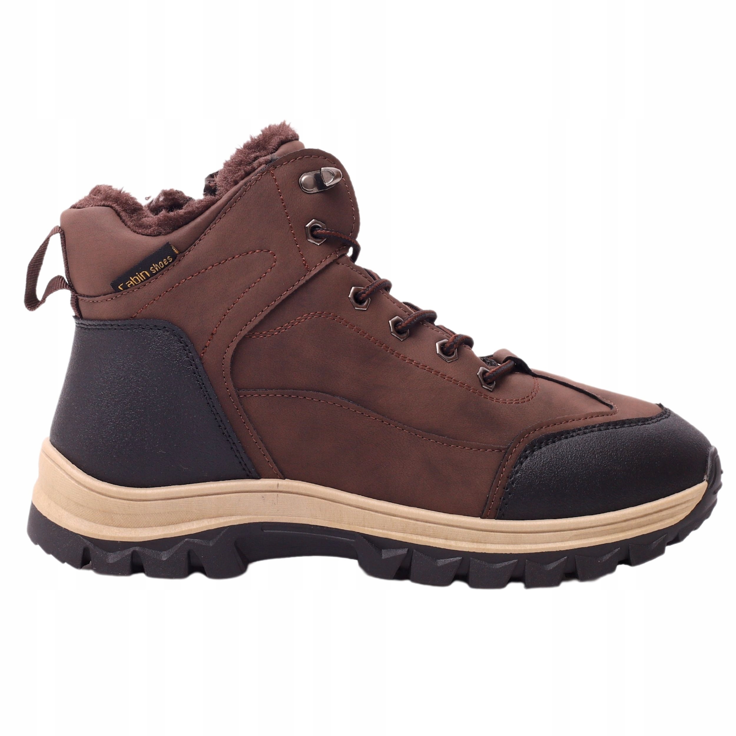 Чоловіче зимове утеплене взуття коричневого кольору відмінної якості матеріалів. Шнурівка регулює ширину взуття. Високий верх забезпечує стійкість. Підошва клеєна, що забезпечує тривалий термін служби. Він повністю утеплений м'яким хутром, ідеально підходить для холодних днів. Протиковзаюча підошва з протектором покращує амортизацію стопи.