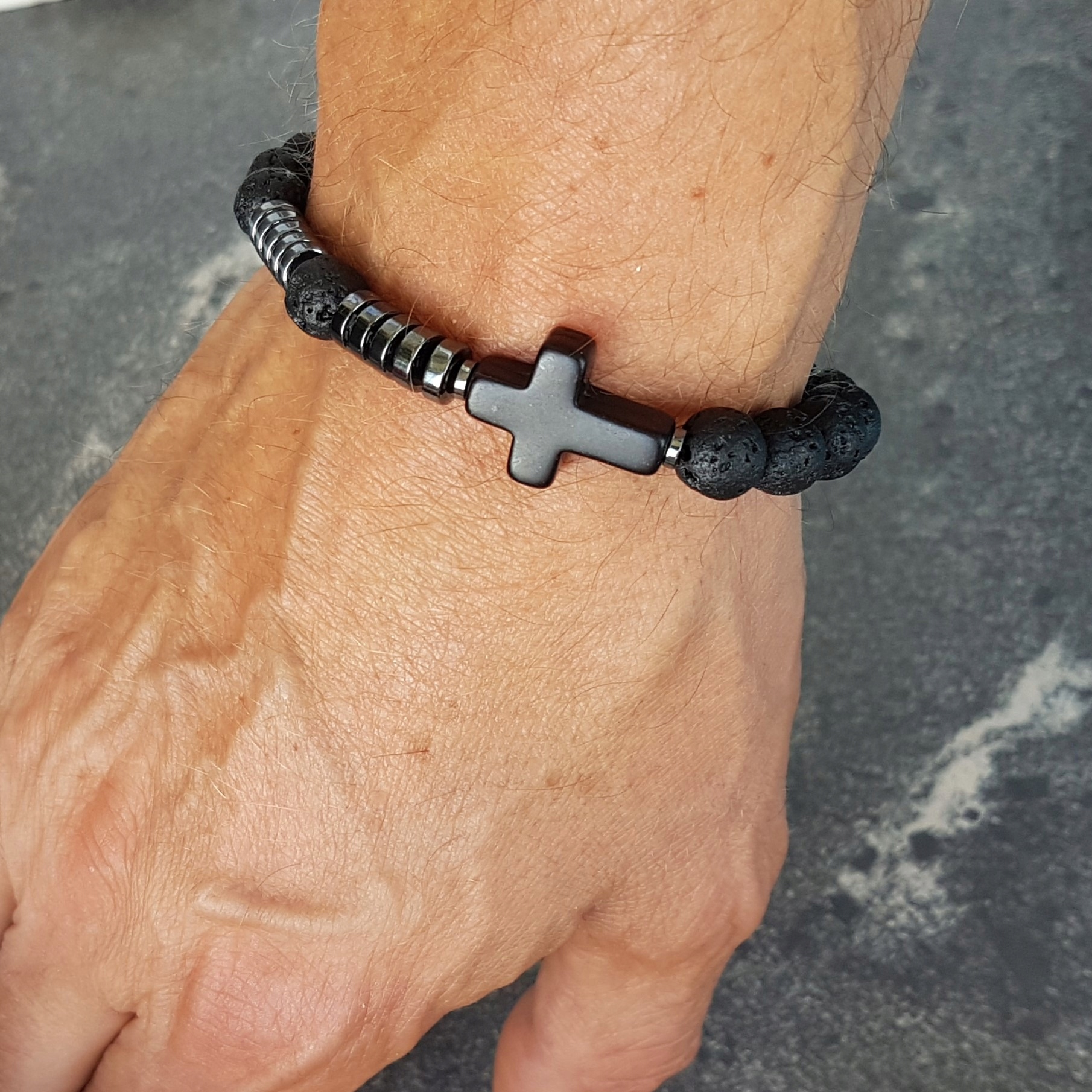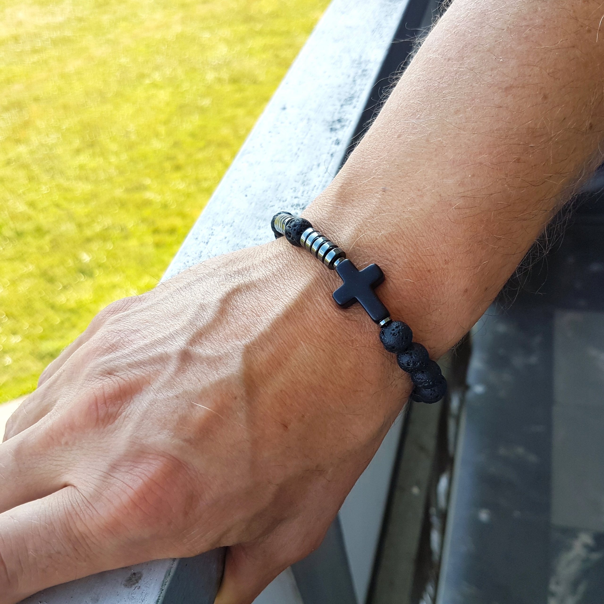 Чоловічий браслет з десятий для ручної лави лави гематит хрест