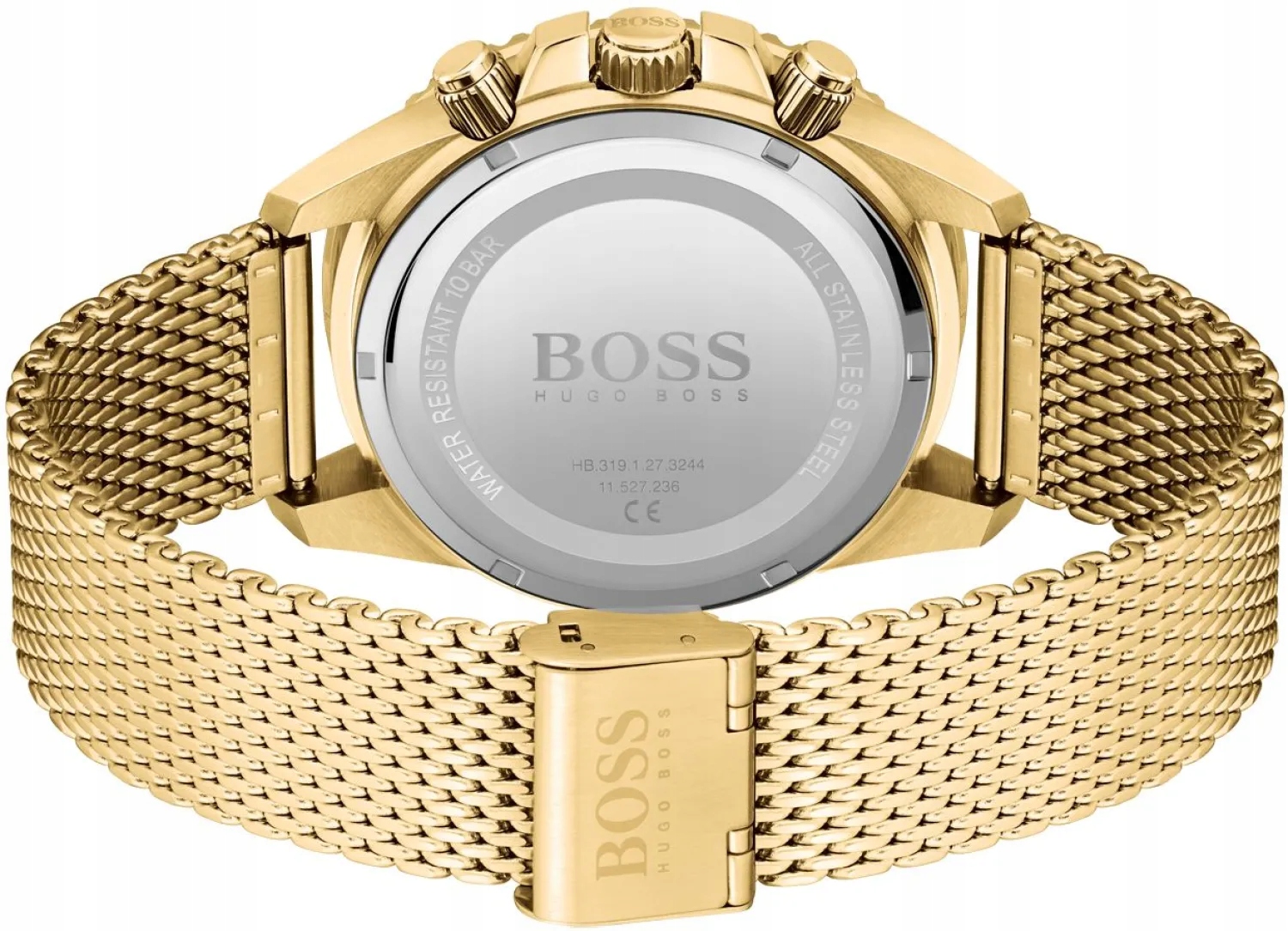 Чоловічий годинник Hugo Boss 1513906 - Admiral - це стильний чоловічий годинник, який ідеально підходить як для елегантного одягу, так і для спортивного та повсякденного стилю. Кварцовий механізм забезпечує точний відлік часу. Корпус і браслет виготовлені з нержавіючої сталі з покриттям золотистого кольору, що гарантує тривалу стійкість до руйнування. На прозорому класичному чорному циферблаті, захищеному мінеральним склом, ви знайдете дисплей дати, що вказує день місяця, і додаткові циферблати, які показують хронограф і денний час. Клас водонепроникності годинника WR100, що гарантує герметичність годинника під час, наприклад, плавання.
