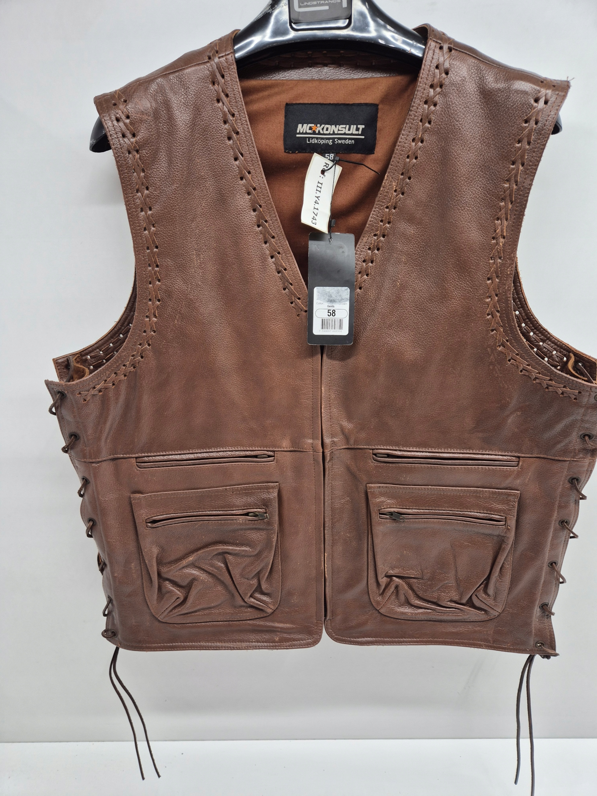 ЧОЛОВІЧИЙ КОРИЧНЕВИЙ ШКІРЯНИЙ ЖИЛЕТ (58)