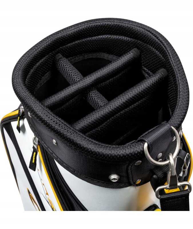 Повний набір зберігається в практичній сумці-візку для гольфу, яка забезпечує зручне перенесення ключок та аксесуарів на поле для гольфу. Виготовлена з міцних матеріалів, сумка має численні кишені, де можна зберігати м’ячі для гольфу, футболки та інші необхідні речі. Зручні ручки та регульований плечовий ремінь полегшують транспортування набору.