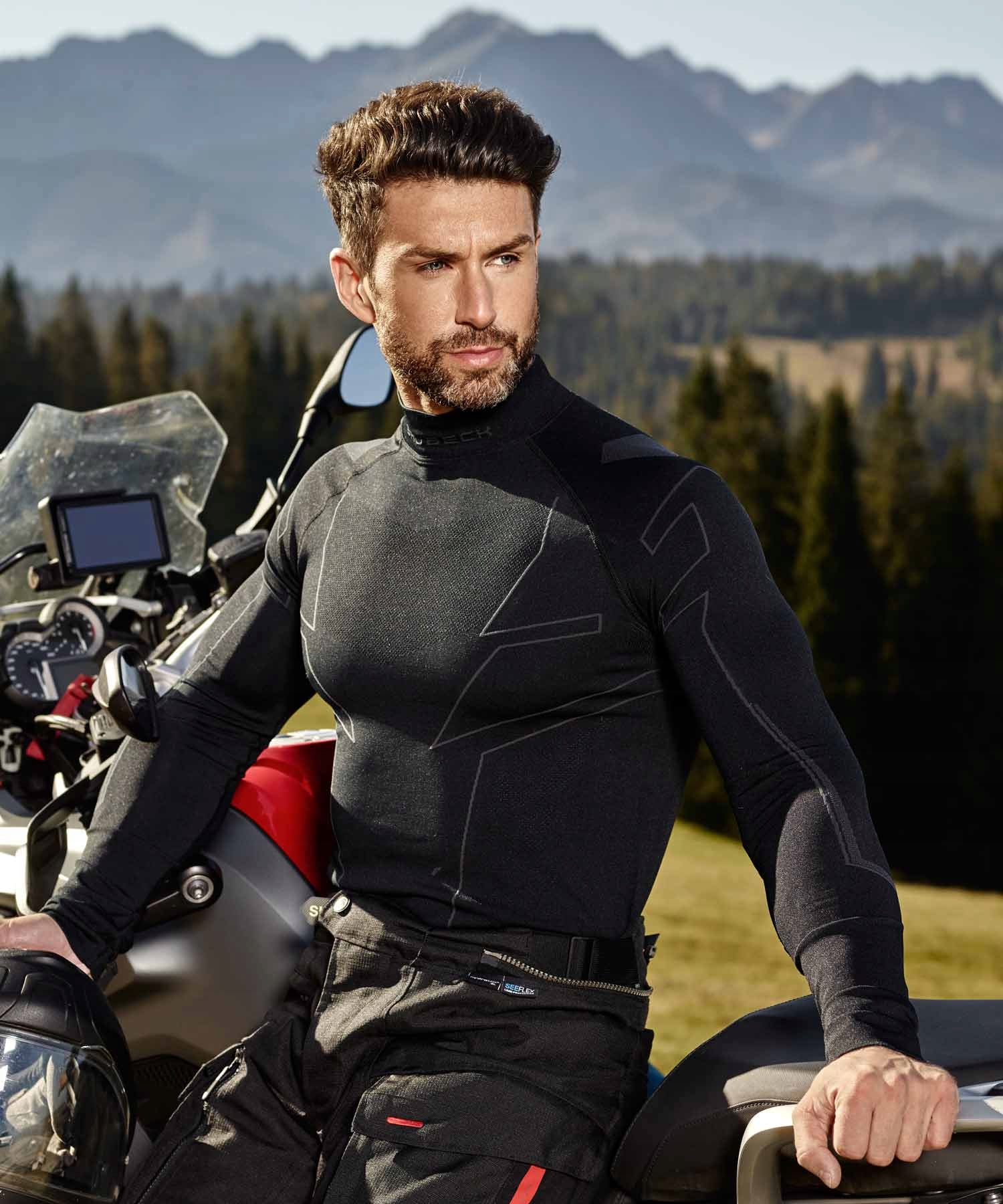 Не можна заперечувати, що купуючи мотоциклетний одяг, більшість людей звертають особливу увагу на такі предмети, як мотоциклетна куртка, мотоциклетні черевики чи мотоциклетні штани. Але про основну частину одягу – термобілизну під мотоциклетний костюм – забувають. А завдяки мотоциклетній білизні, яка створена для забезпечення комфорту та функціональності, ви можете насолоджуватися моментами, проведеними під час їзди. Особливо влітку, коли на вулиці висока температура, складно знайти відповідну термобілизну. Тому, щоб задовольнити потреби, ми пропонуємо термосвітшот COOLER для мотоциклістів із охолоджувальною пряжею з колекції