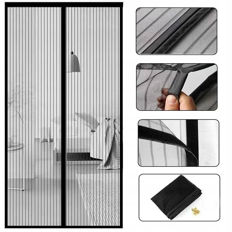 7 пар блокових магніти та 6 пар магнітних смуг означають, що сітка комарів автоматично закривається після кожного проходу - ідеально підходить для будинків з дітьми та тваринами. Забезпечує циркуляцію повітря, не обмежуючи видимість або доступ денного світла. Чорний колір матеріалу стримано поєднується з дверною рамою, не порушуючи естетики інтер’єру. Міцні елементи кріплення для сильної липучки забезпечують стабільність та багатосезонну міцність продукту.