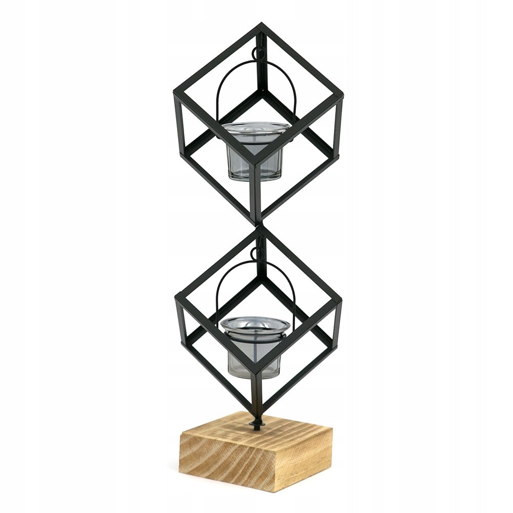 Унікальний сучасний підсвічник на 2 свічки чорно-коричневого кольору. Він стане унікальною прикрасою у вітальні, їдальні або холі. Підсвічник має 2 естетичні скляні ємності для чайних свічок. Його унікальний дизайн означає, що ніхто не пройде повз такого свічника байдужим.