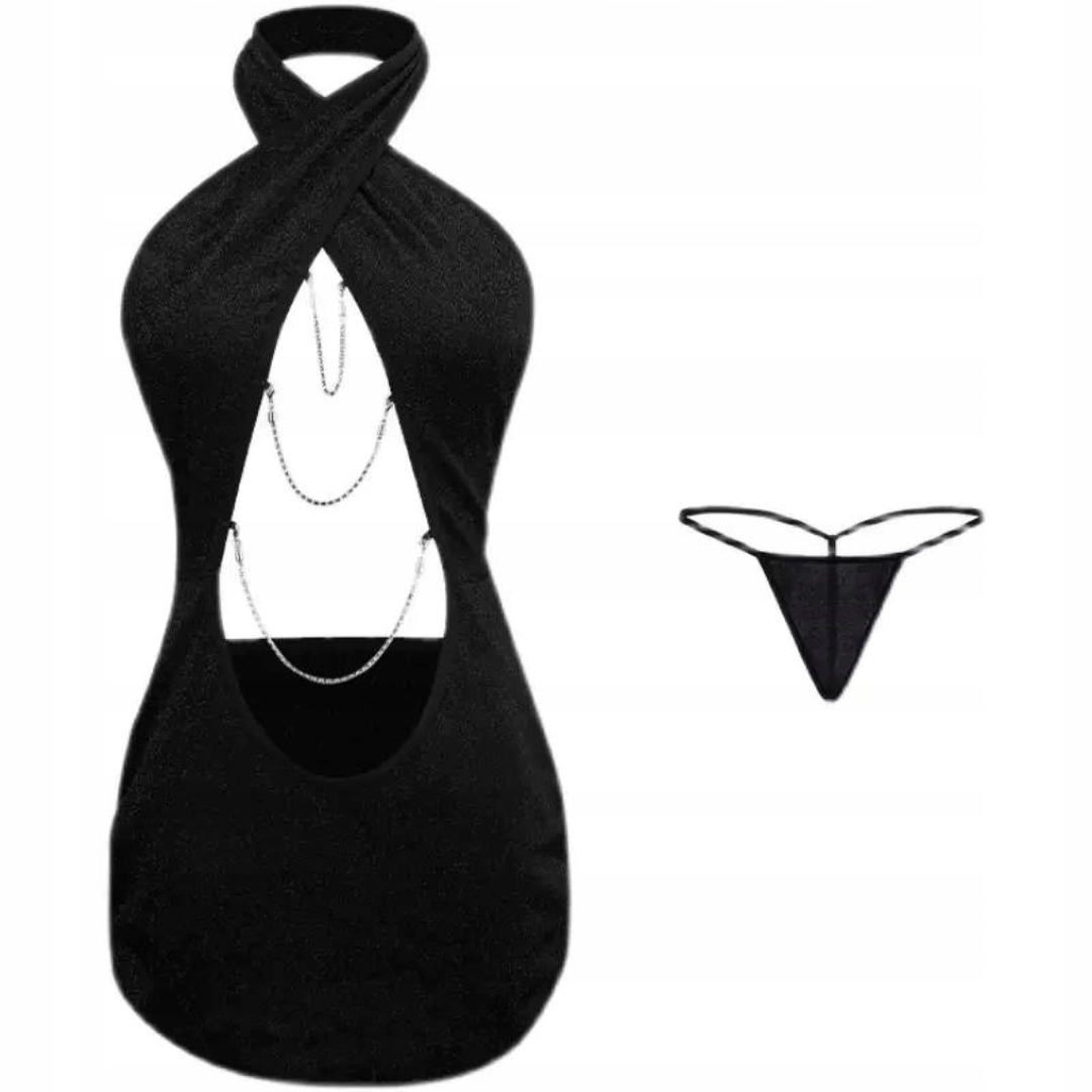 Чорне міні -плаття з ланцюгами - Еротична нижня білизна: Сексуальна нічна сорочка з відповідними струнами