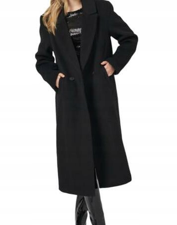 Чорне подвійно -бровне пальто з домішкою вовни класичного гладкого 38