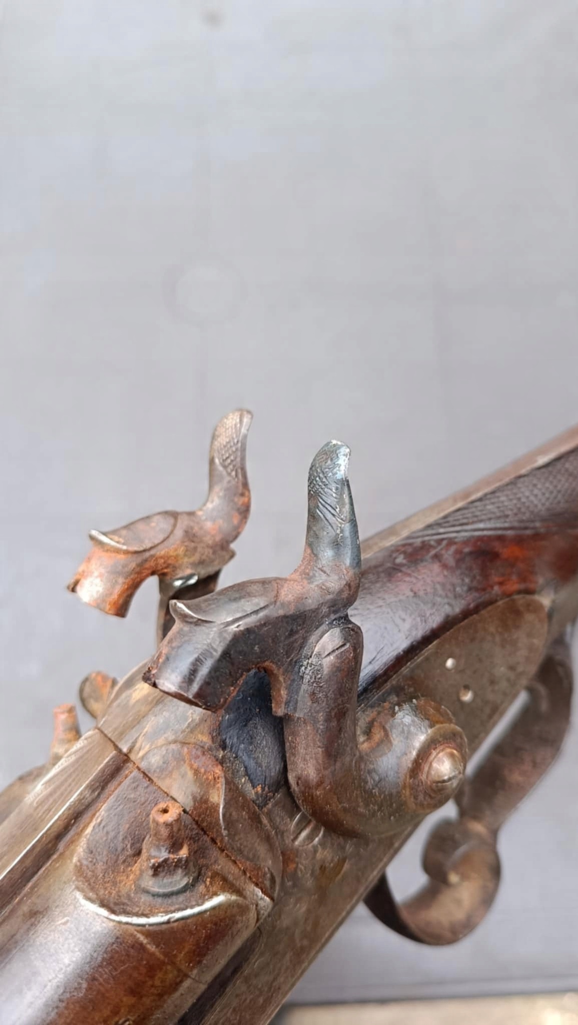 Чи підходить він для стрільби? - Найкраще перевірити себе, я продаю як камінні прикраси. Можна вистрілити сухий постріл, подвійне напруження. Замок тригера працює добре. Пряма бочка, у хорошому стані. Дерево в хорошому стані, один розрив деревини. Каміни добре. Кінець курки, позаду, яку вона ловить під час напруги. У зоні замку немає шматка деревини - на фотографії видно. На моєму місці, після доставки упаковки, ви вирішите, чи вирішите ви купити. Якщо товар не відповідає очікуванням, ми надсилаємо товар без будь -якого перекладу. Найкраще з мене раніше після
