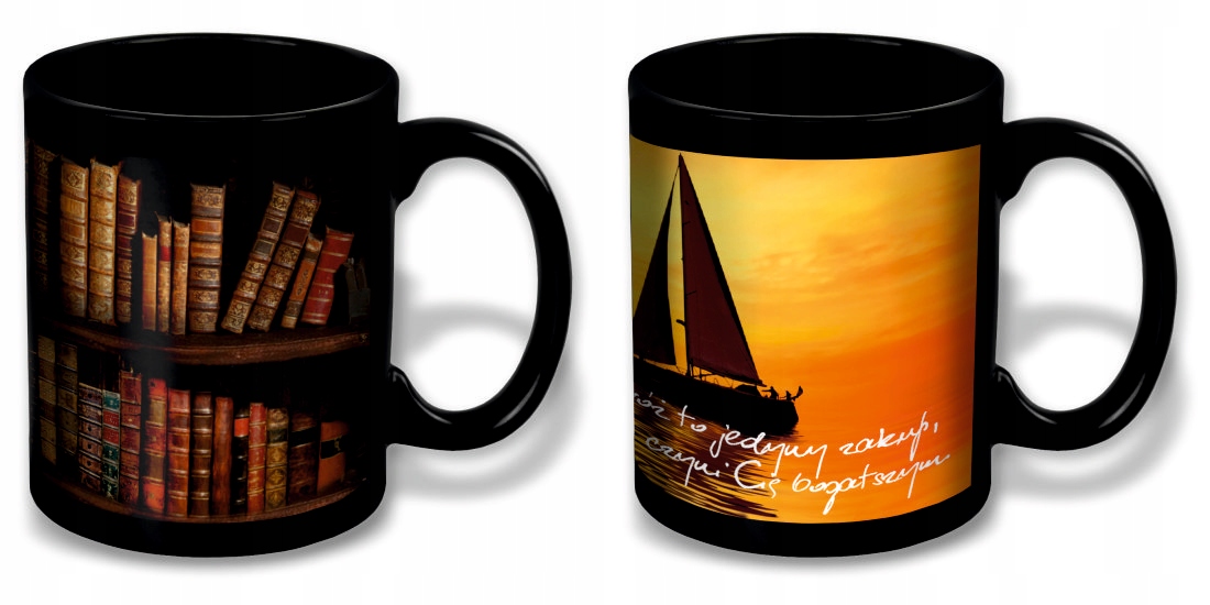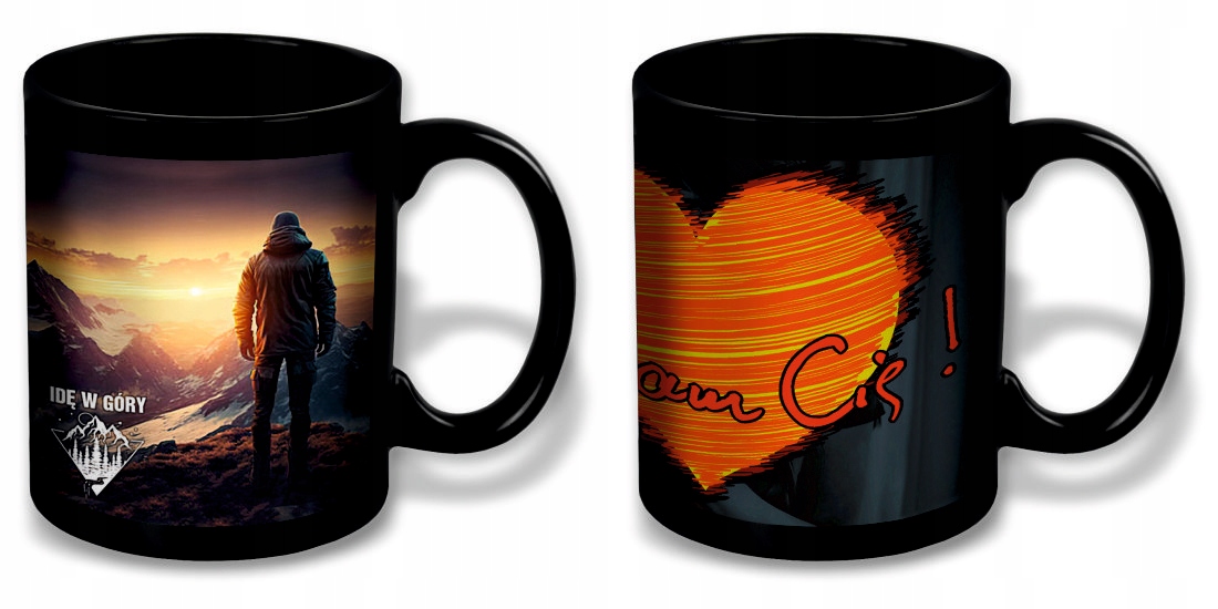 Ми робимо всі свої відбитки на чашках за допомогою техніки сублімації. Він довговічний та ефективний, дозволяє повні кольорні відбитки на спеціально адаптованих покриттів. Відбитки характеризуються вірою високої довговічності відданості кольорів та деталей. З технологічних причин ми не рекомендуємо використовувати чорний фон як графічний фундамент, оскільки чорний принт може мати інший відтінок, ніж чорна скляна емаль.