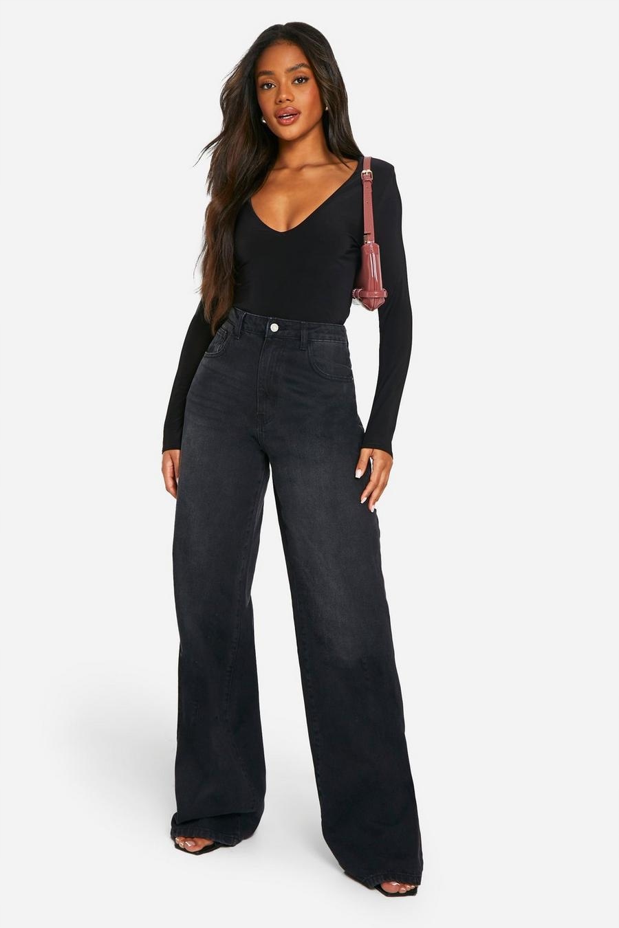 Чорний гладкий пристосований довгі рукави глибокий декольте V Boohoo 38
